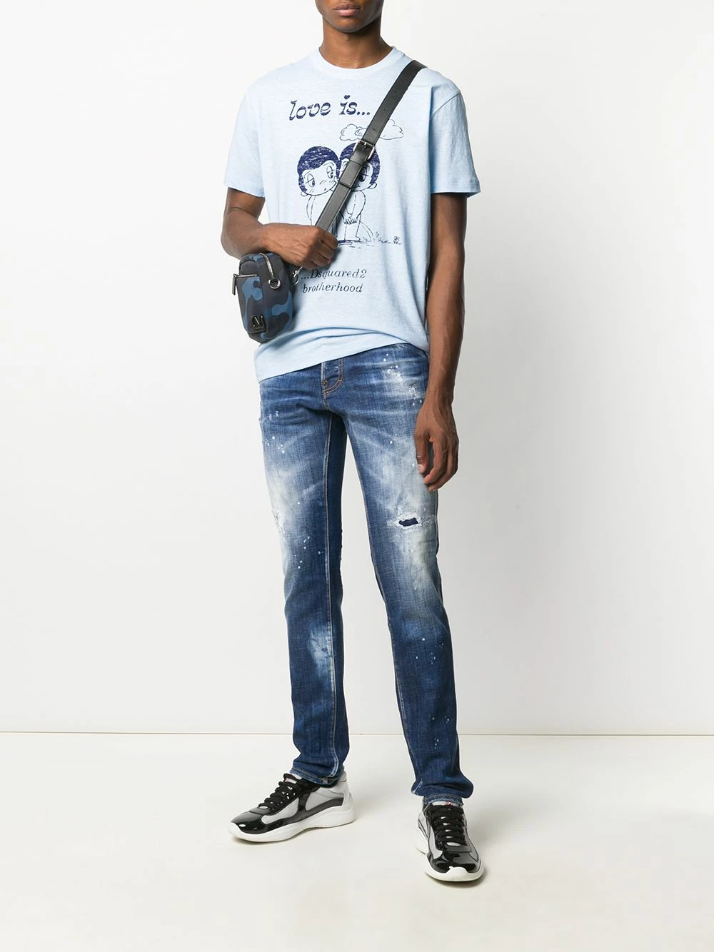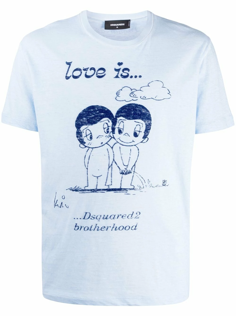 Slogan imprimé sur l’avant, manches courtes, encolure ronde, ourlet droit. Matière : coton.