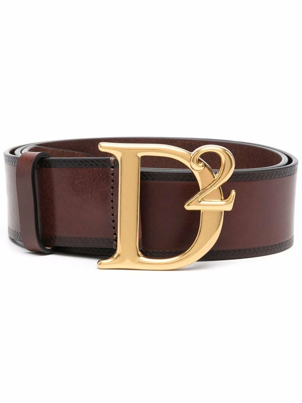 Finitions en métal doré, fermeture à boucle logo, taille ajustable. Couleur : marron. Matière : cuir.