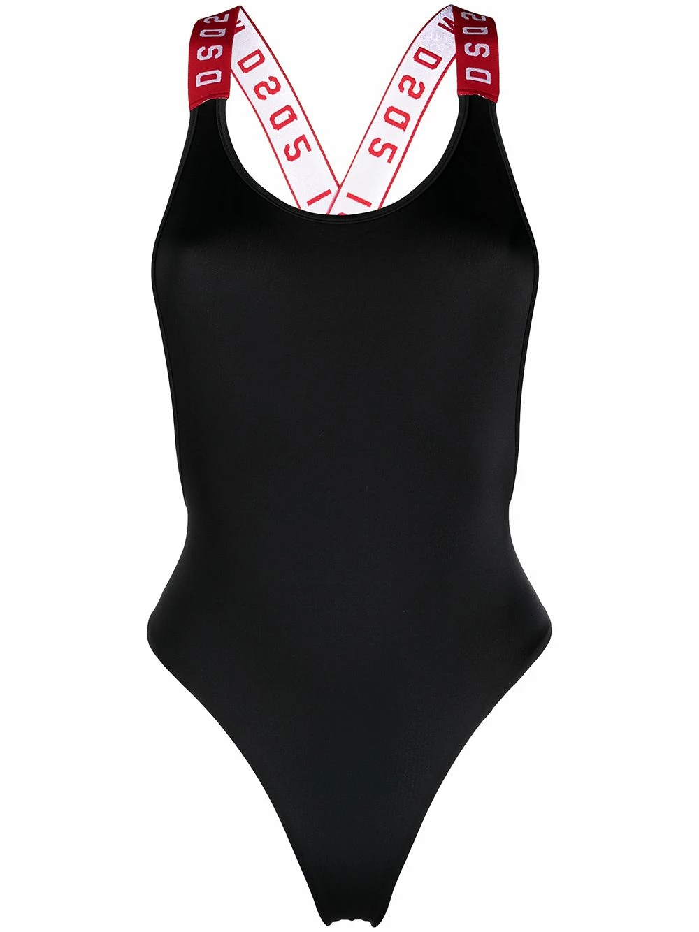 Encolure arrondie, dos-nu, deux brides portées épaule ornées à logo, construction stretch. Couleur : Noir. Veillez à essayer les maillot de bain par-dessus vos propres sous-vêtements.