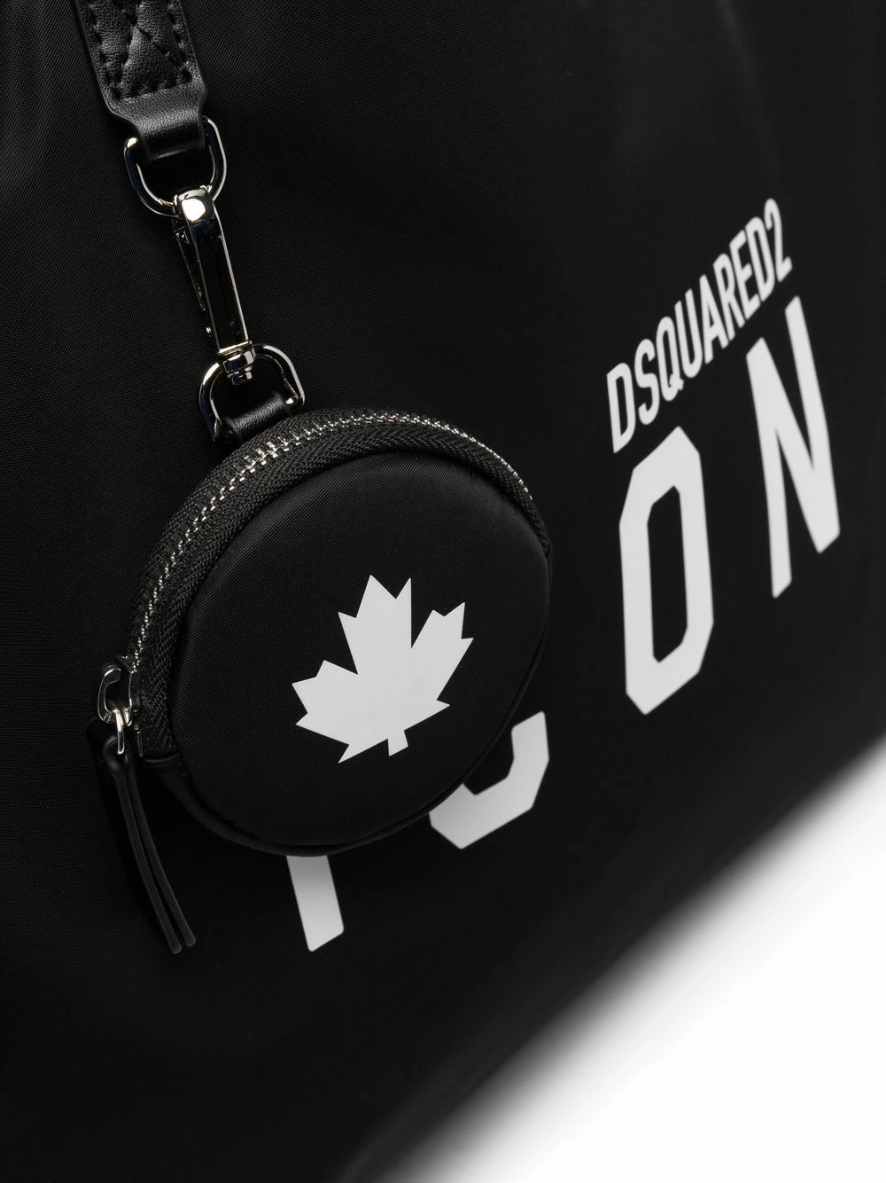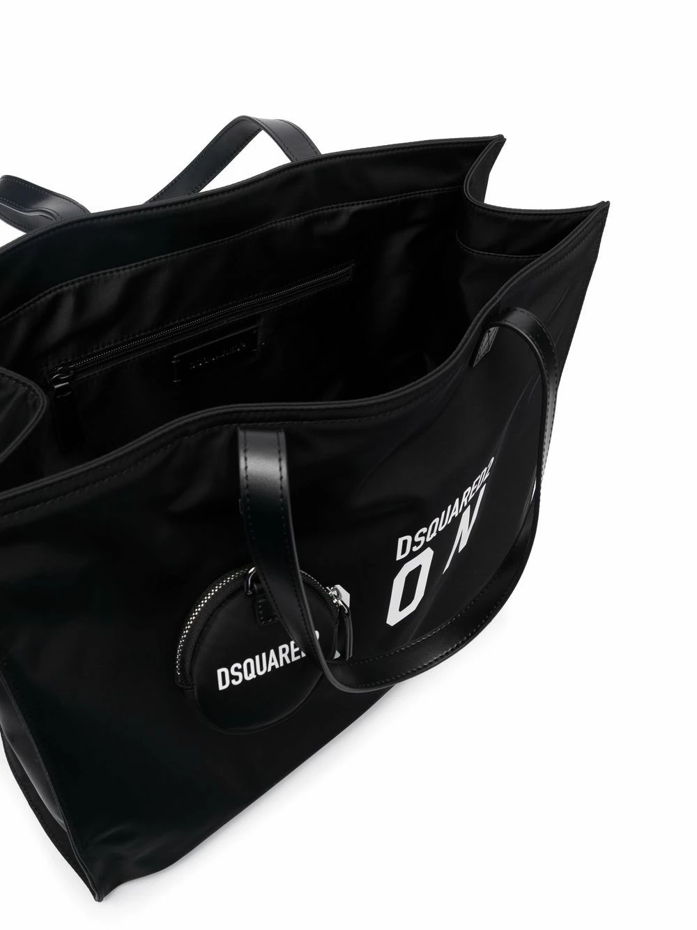Logo imprimé sur le devant, coutures ton sur ton, plaque logo intérieure, pochette détachable, poches intérieures zippées. Couleur : noir.
