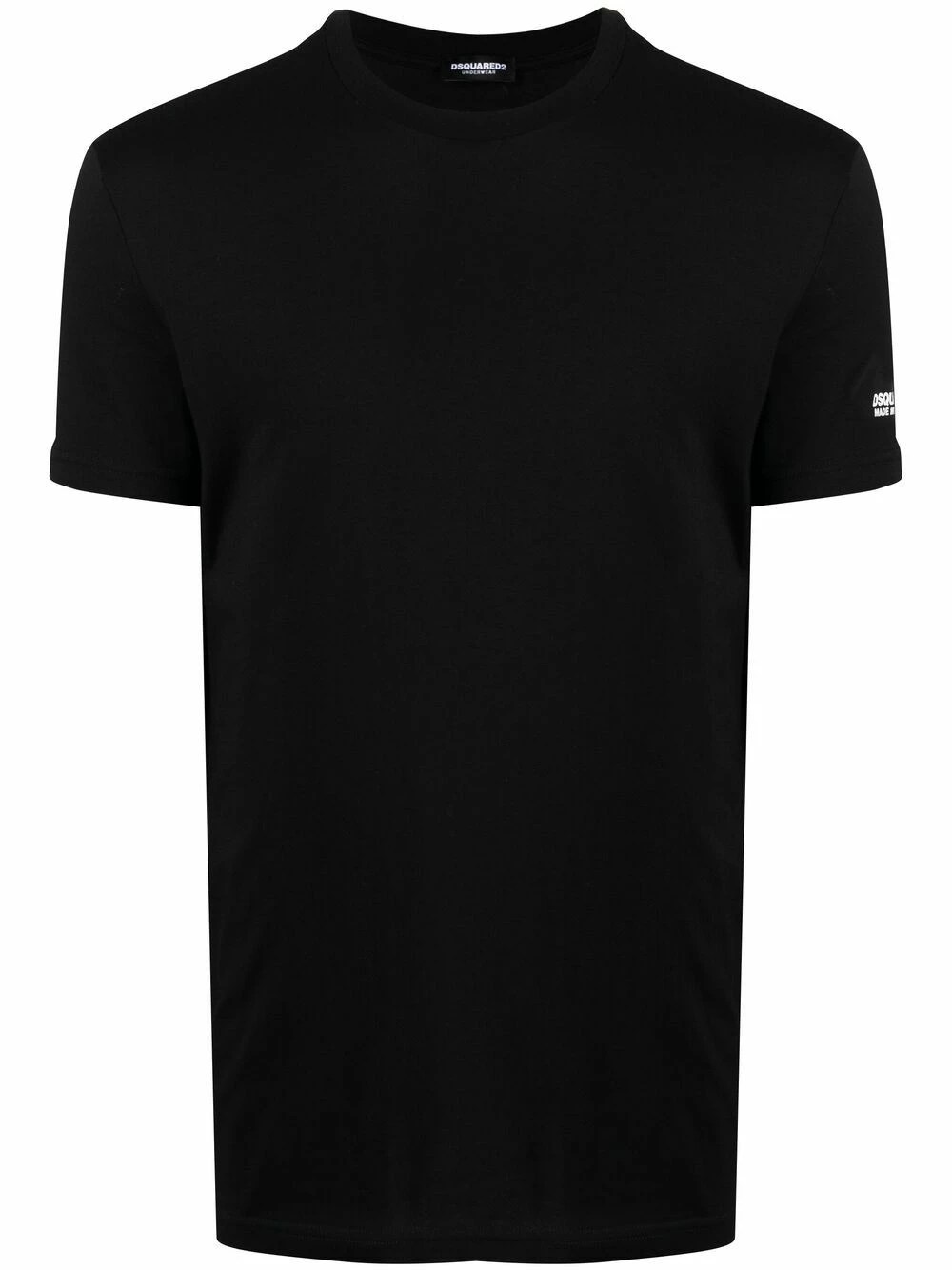 Encolure ronde, manches courtes, logo imprimé sur la manche, slogan imprimé, ourlet droit. Couleur : noir.