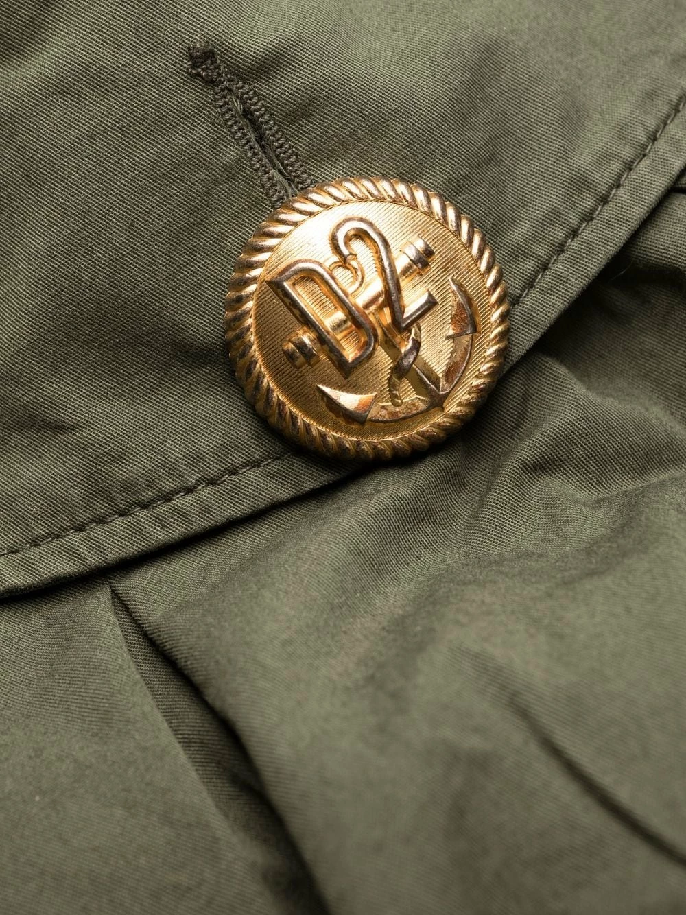 Passants de ceinture, poches latérales fendues, poches arrière passepoilées, poches latérales kangourou, coupe courte. Couleur : vert.