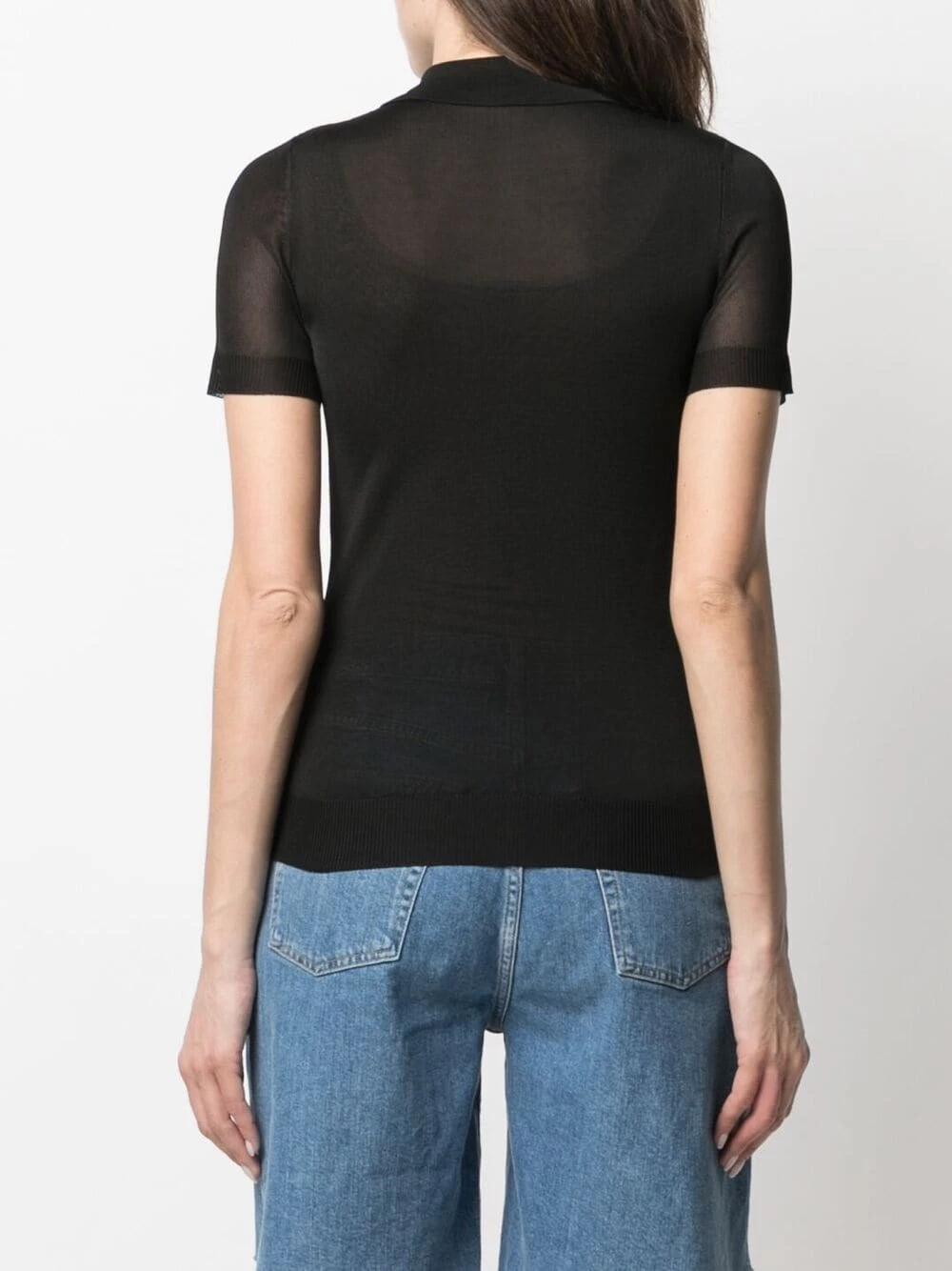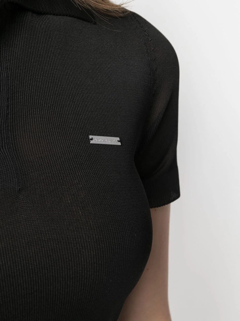 Plaque logo argentée, col polo, manches courtes, ourlet droit. Couleur : noir.