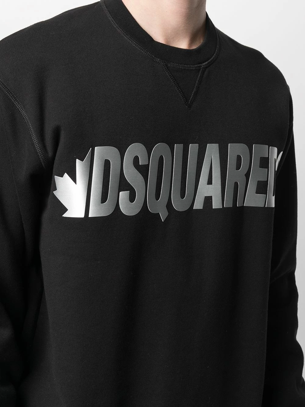 Tricot point jersey, fini métallisé, logo imprimé à la poitrine, encolure ras du cou, poignets élastiqués. Couleur : Noir. Matière : coton.