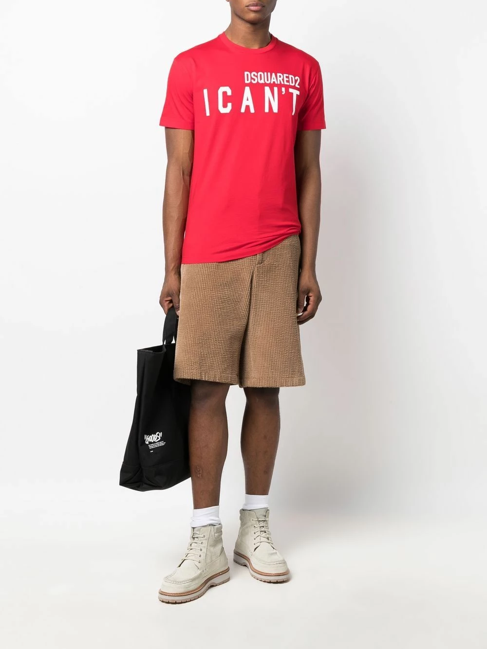 Slogan imprimé sur l’avant, encolure ronde, manches courtes, ourlet droit. Matière : coton.