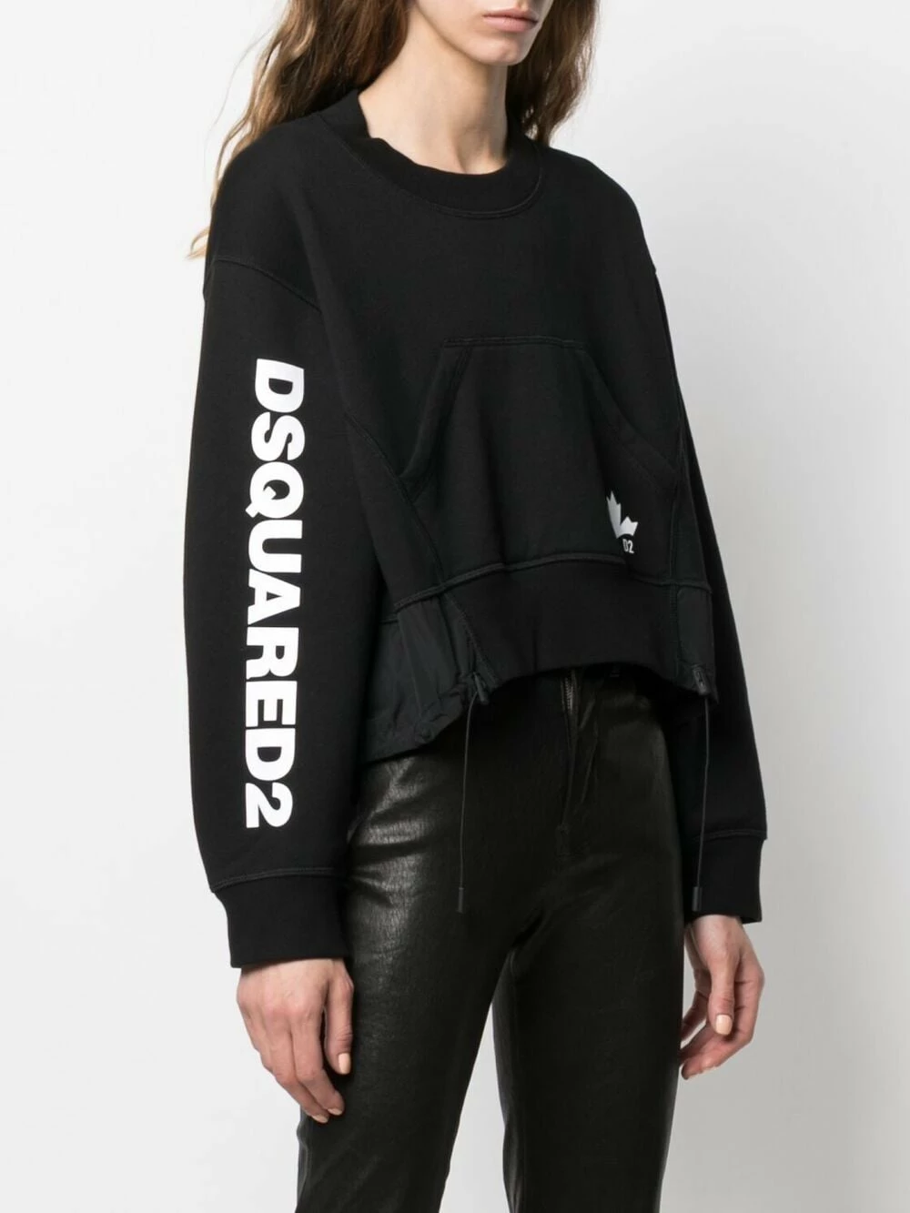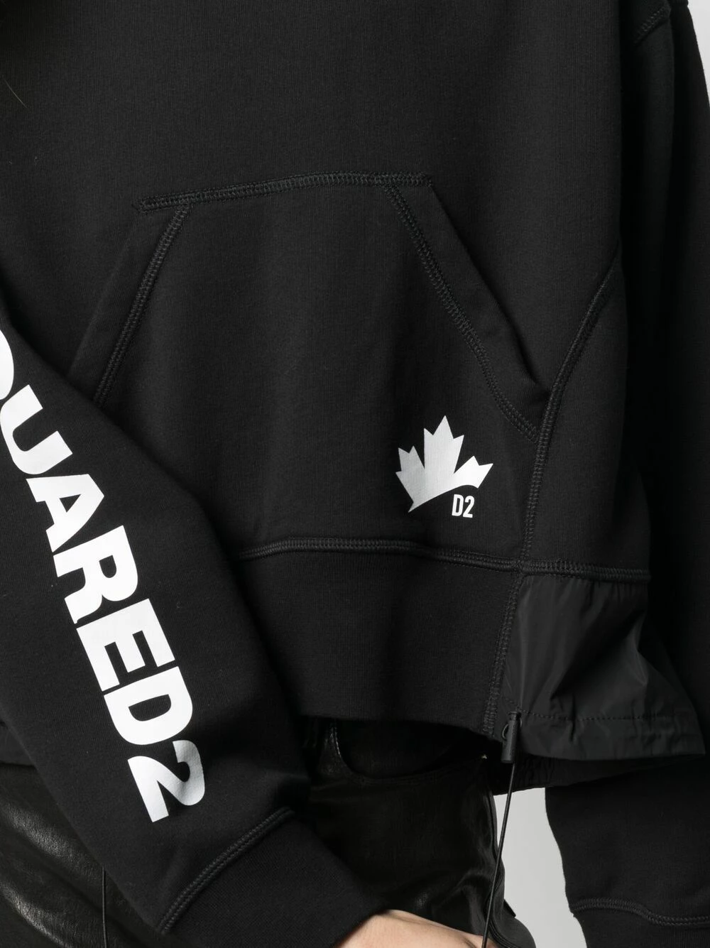 Imprimé feuille d’érable, encolure ras du cou, effet d’épaules descendues, manches longues, poche plaquée, ourlet à lien de resserrage. Couleur : noir. Matière : coton.