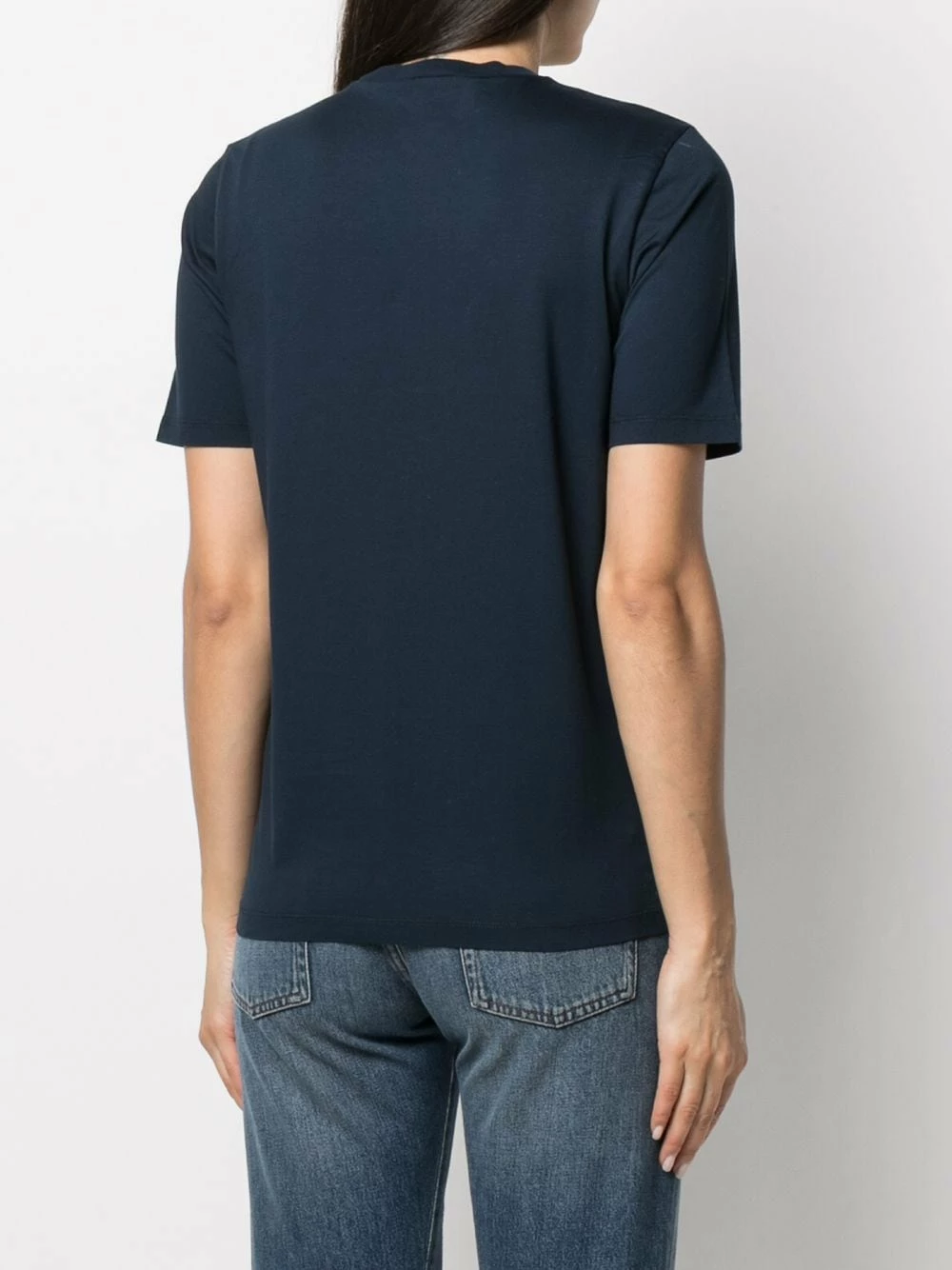 Logo imprimé à la poitrine, encolure ronde, manches courtes, ourlet droit. Matière : coton.