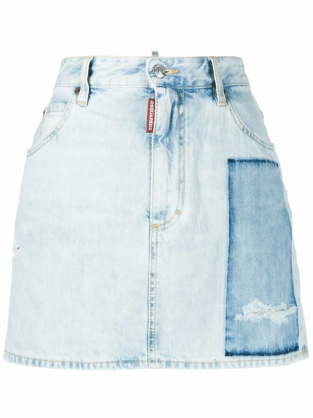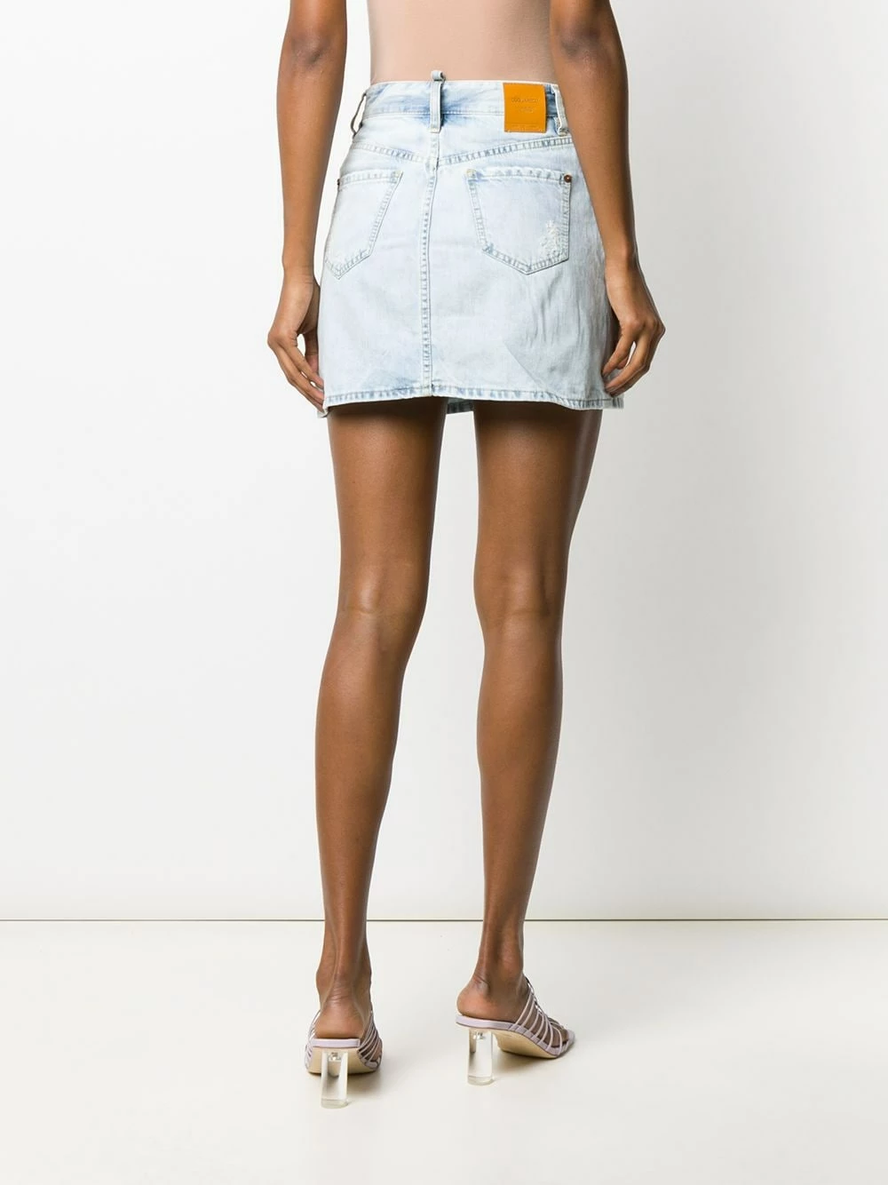 Jupe Dalma en coton Dsquared2 avec taille haute, coupe classique cinq poches, passants de ceinture, bouton et zip, patch logo en cuir sur l’arrière et coupe courte.