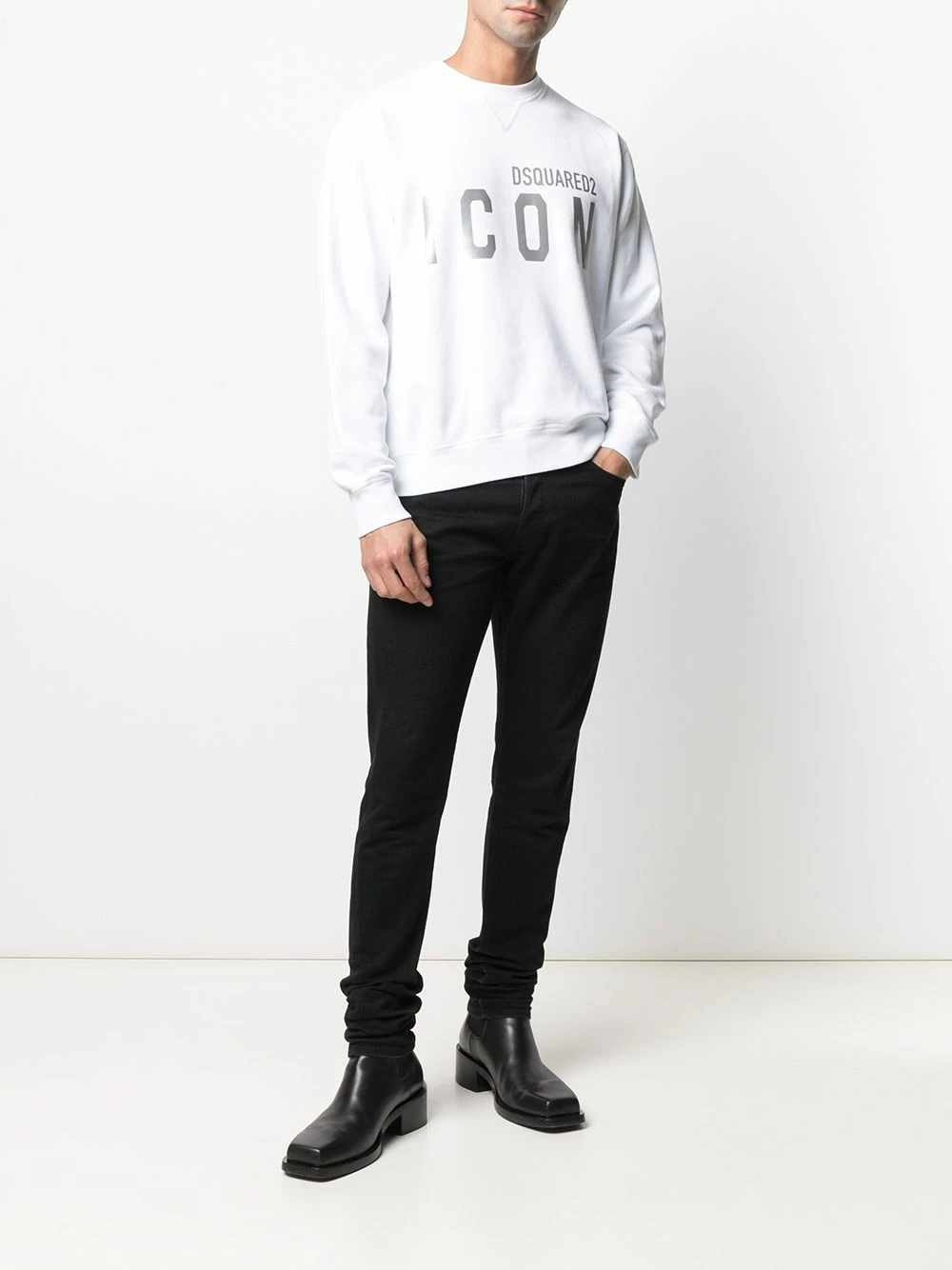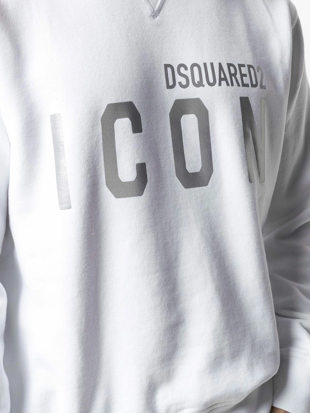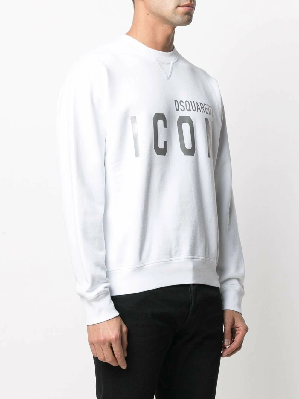 Logo imprimé sur le devant, fini métallisé, encolure ras du cou, manches longues, poignets nervurés, ourlet nervuré. Couleur : blanc. Matière : coton.