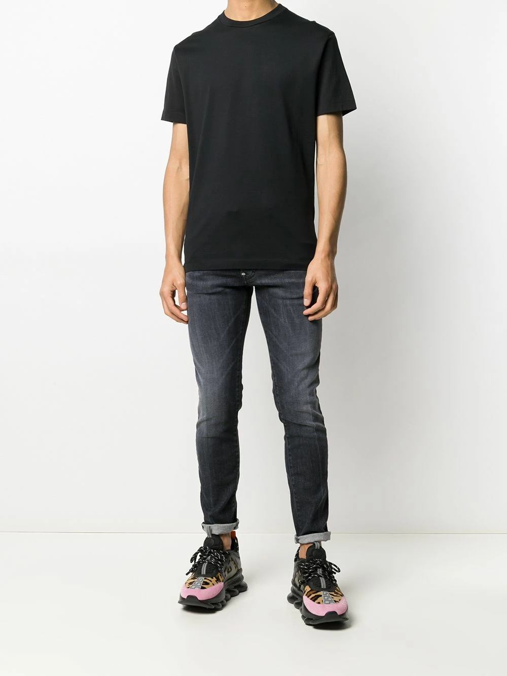 Encolure ronde, manches courtes, ourlet droit. Couleur : noir.