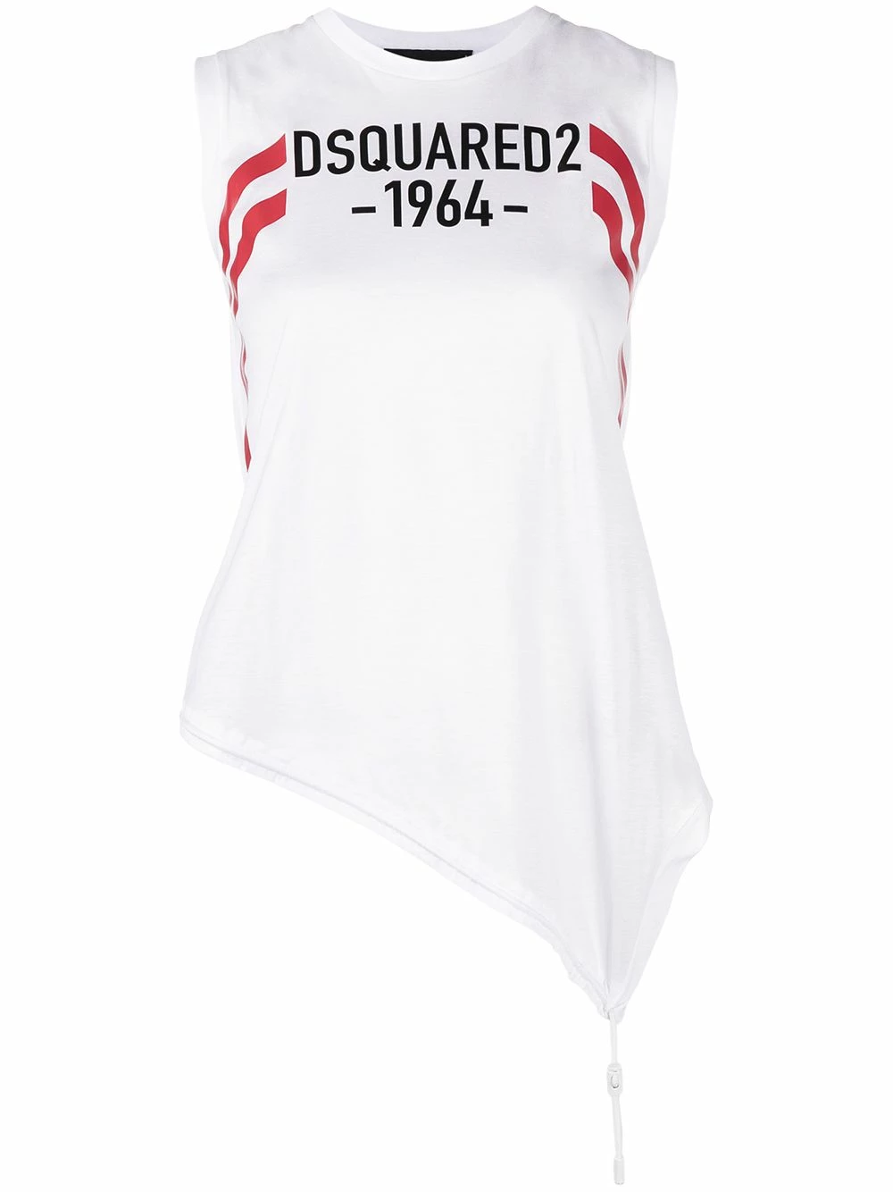 Logo imprimé sur le devant, détail de rayure latérale, encolure ras du cou, design sans manches, ourlet asymétrique, lien de resserrage. Couleur : blanc. Matière : coton.
