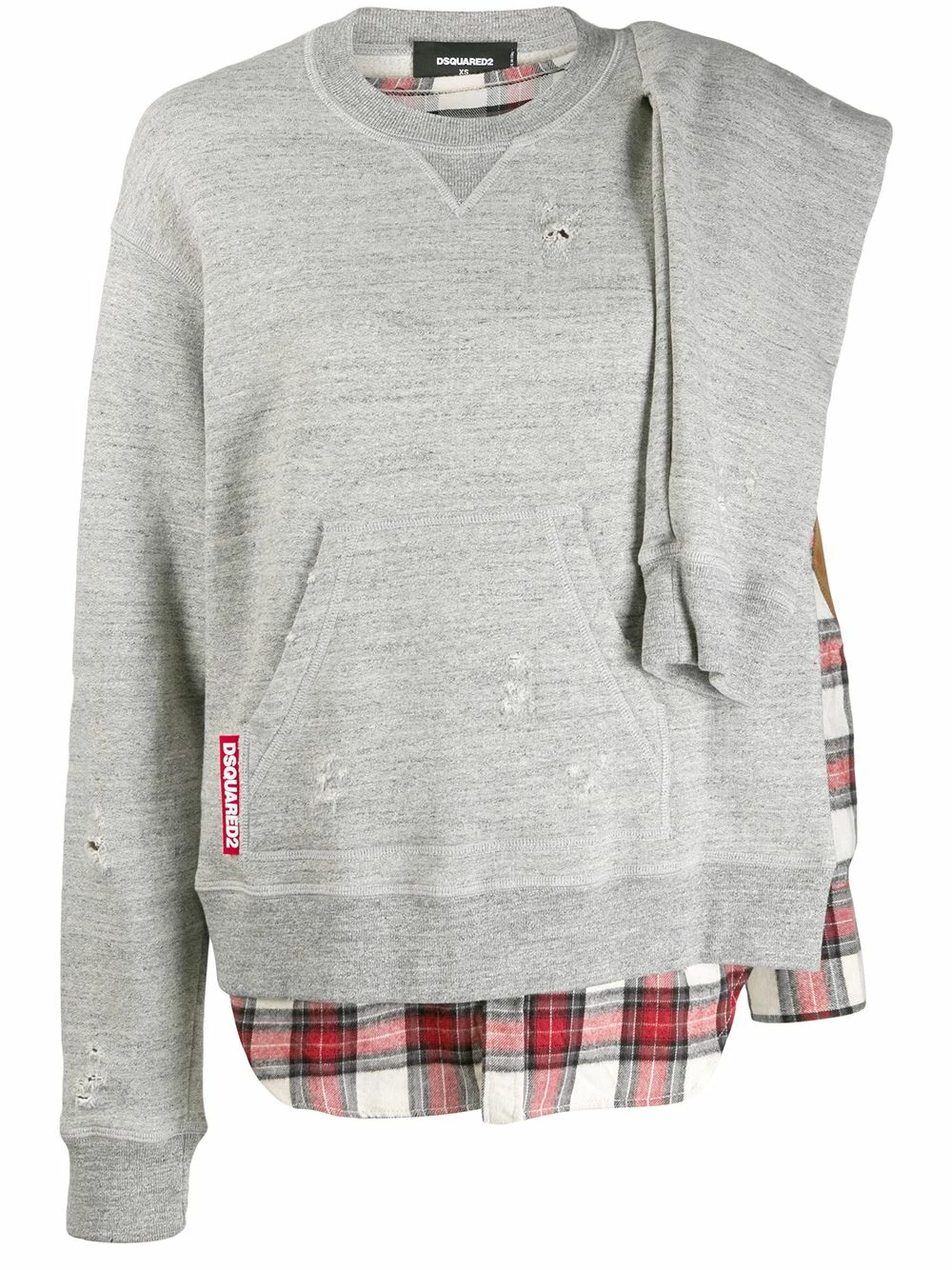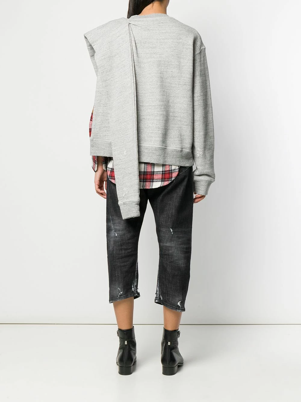 Sweat à design superposé en coton Dsquared2 avec encolure ronde, manches asymétriques, ourlet nervuré et design superposé. Couleur : gris.