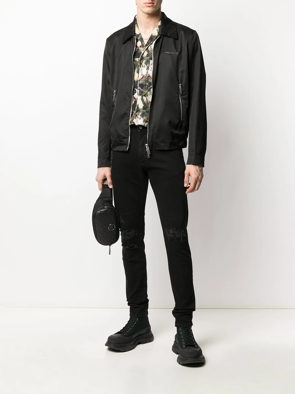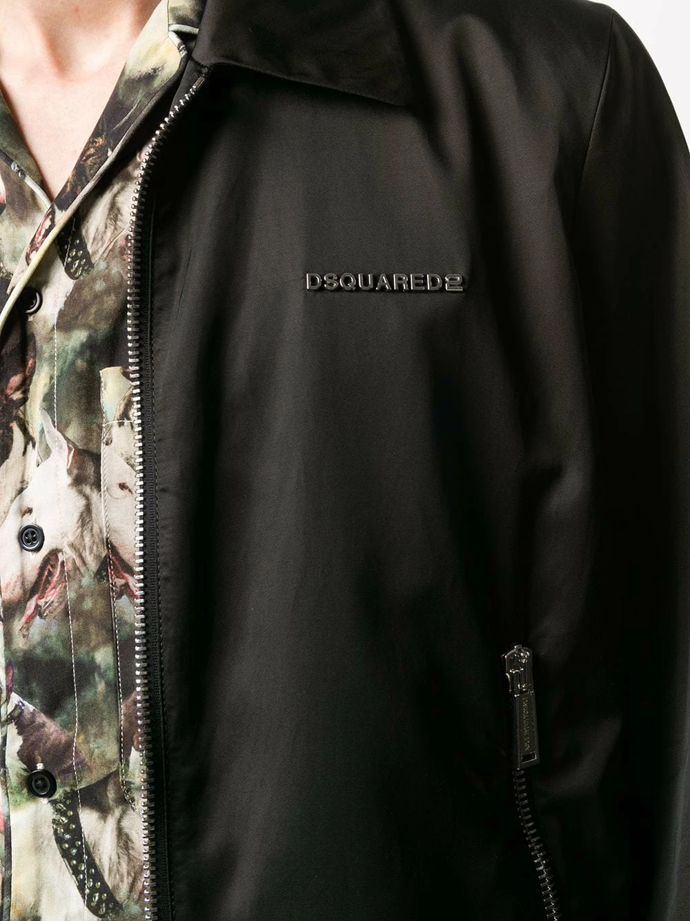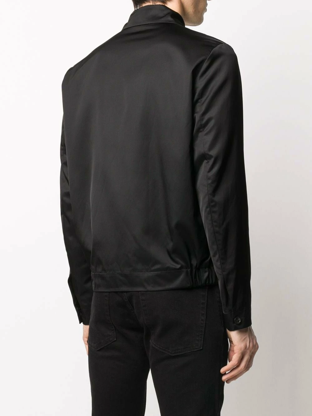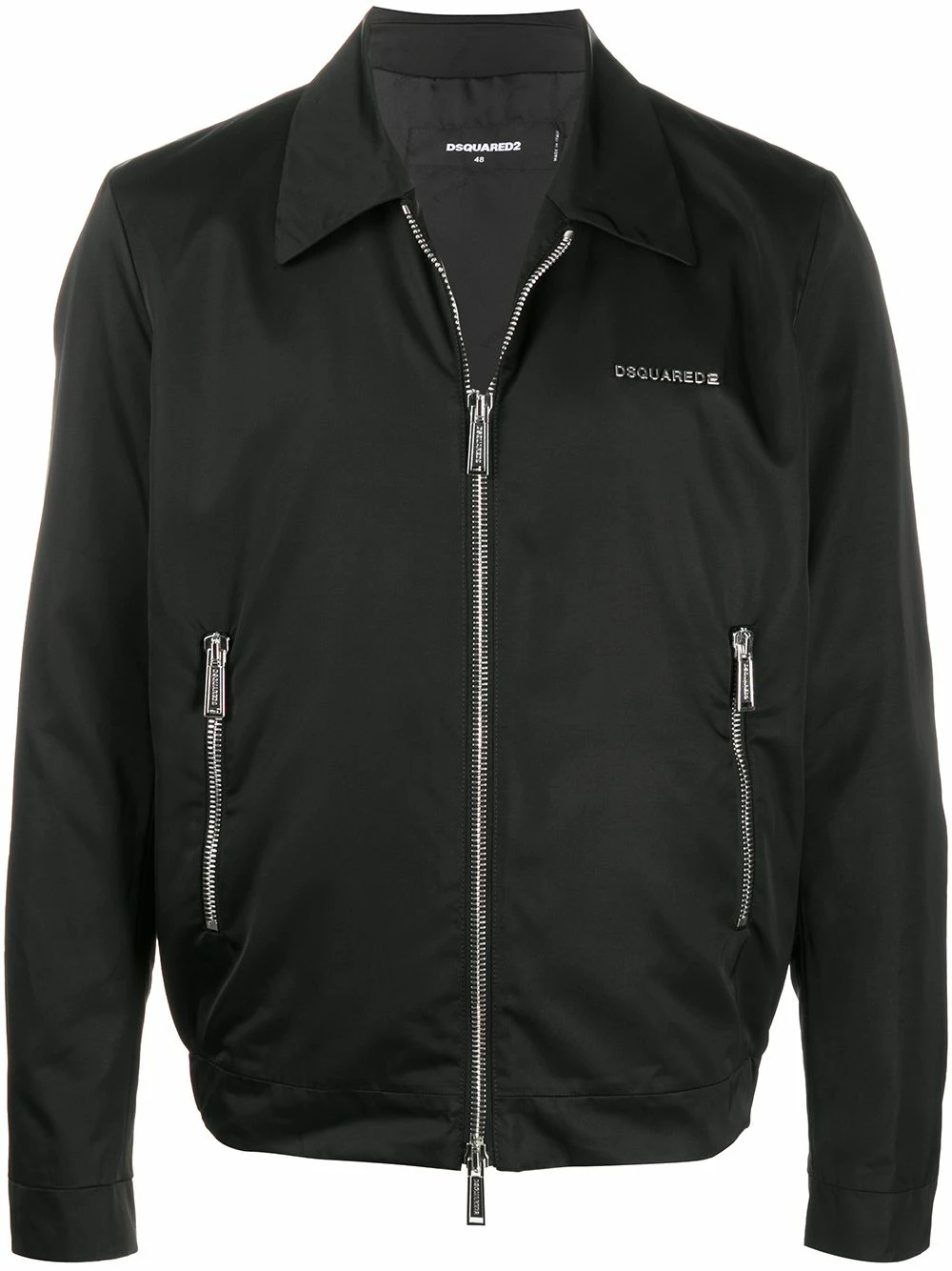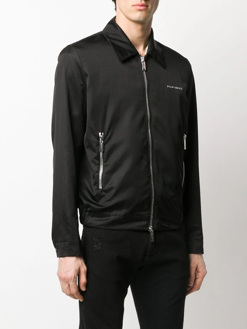 Logo argenté, col classique, fermeture zippée devant, deux poches zippées, manches longues, poignets boutonnés. Couleur : noir. Matière : COTON MÉLANGÉ.