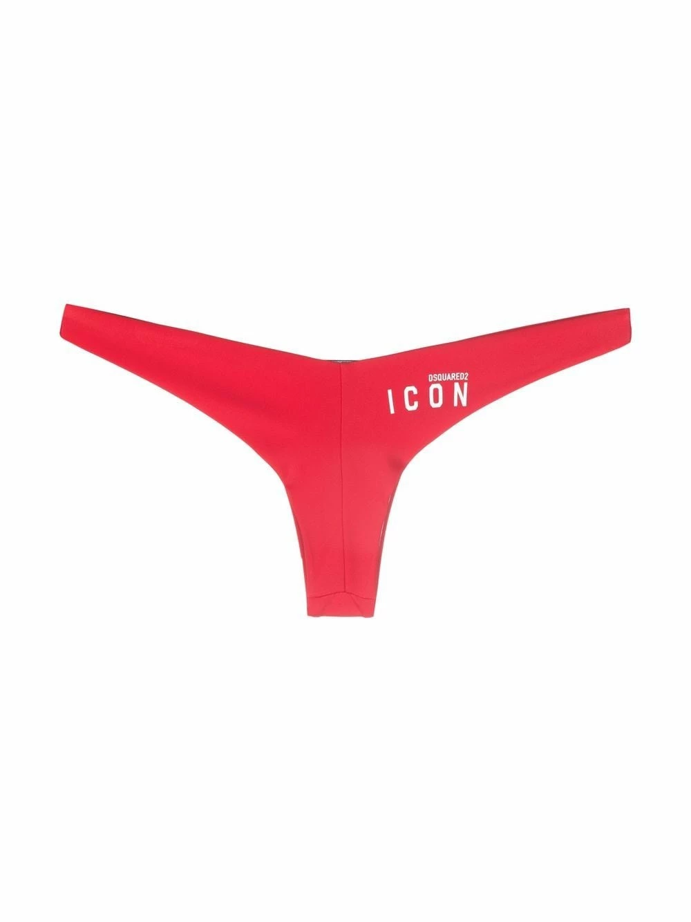 Construction stretch, design de string, logo imprimé sur le devant. Couleur : rouge. Veillez à essayer les maillot de bain par-dessus vos propres sous-vêtements.