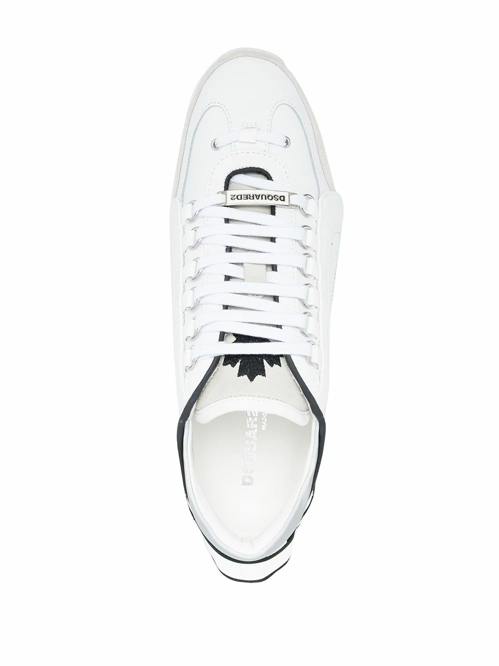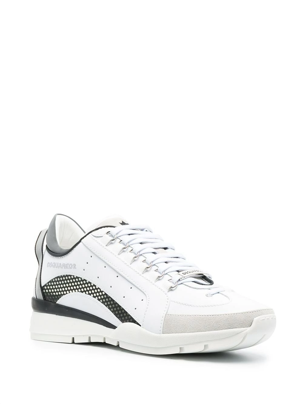 Design à empiècements, fermeture à lacer sur le devant, bout rond, anneaux en D, languette d’enfilage au talon, logo imprimé sur le côté, semelle plate en caoutchouc. Matière : cuir de veau.