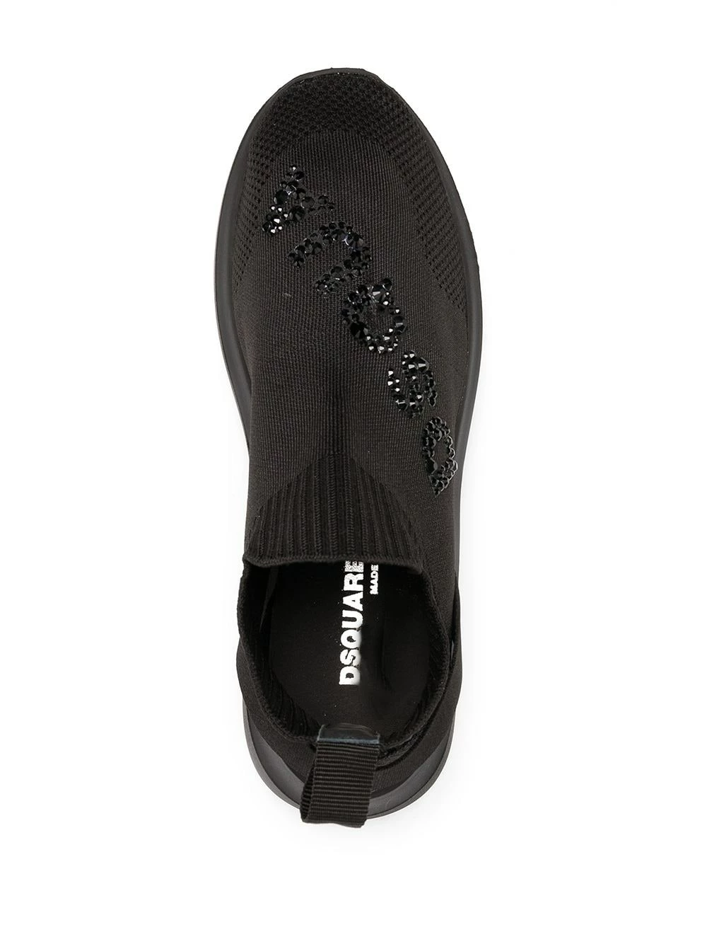 Bout rond, ornements en pierre précieuse, semelle intérieure à logo, languette d’enfilage à logo au talon, semelle épaisse en caoutchouc. Couleur : noir.