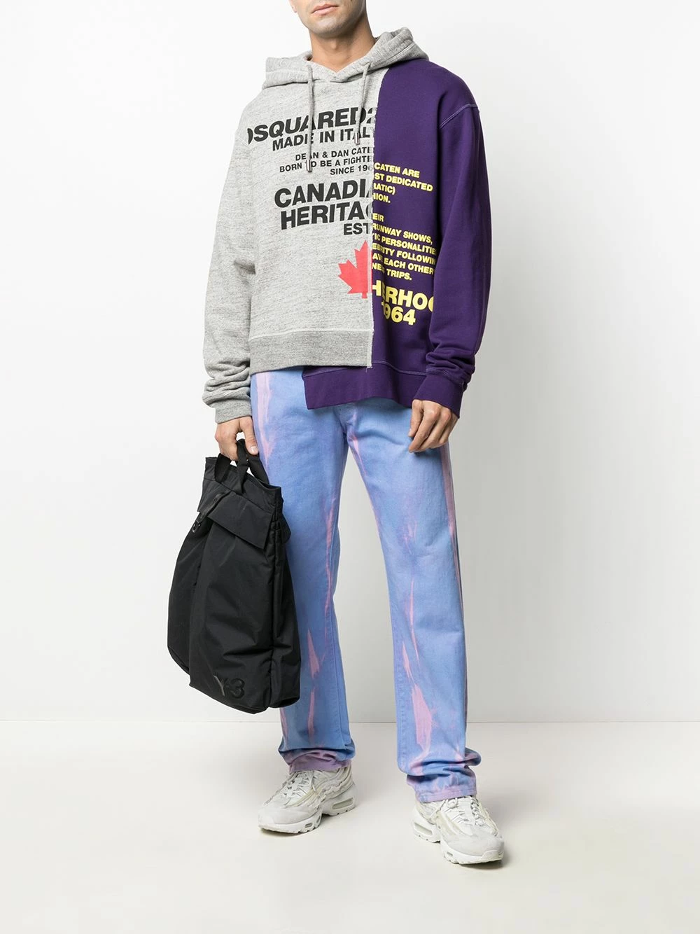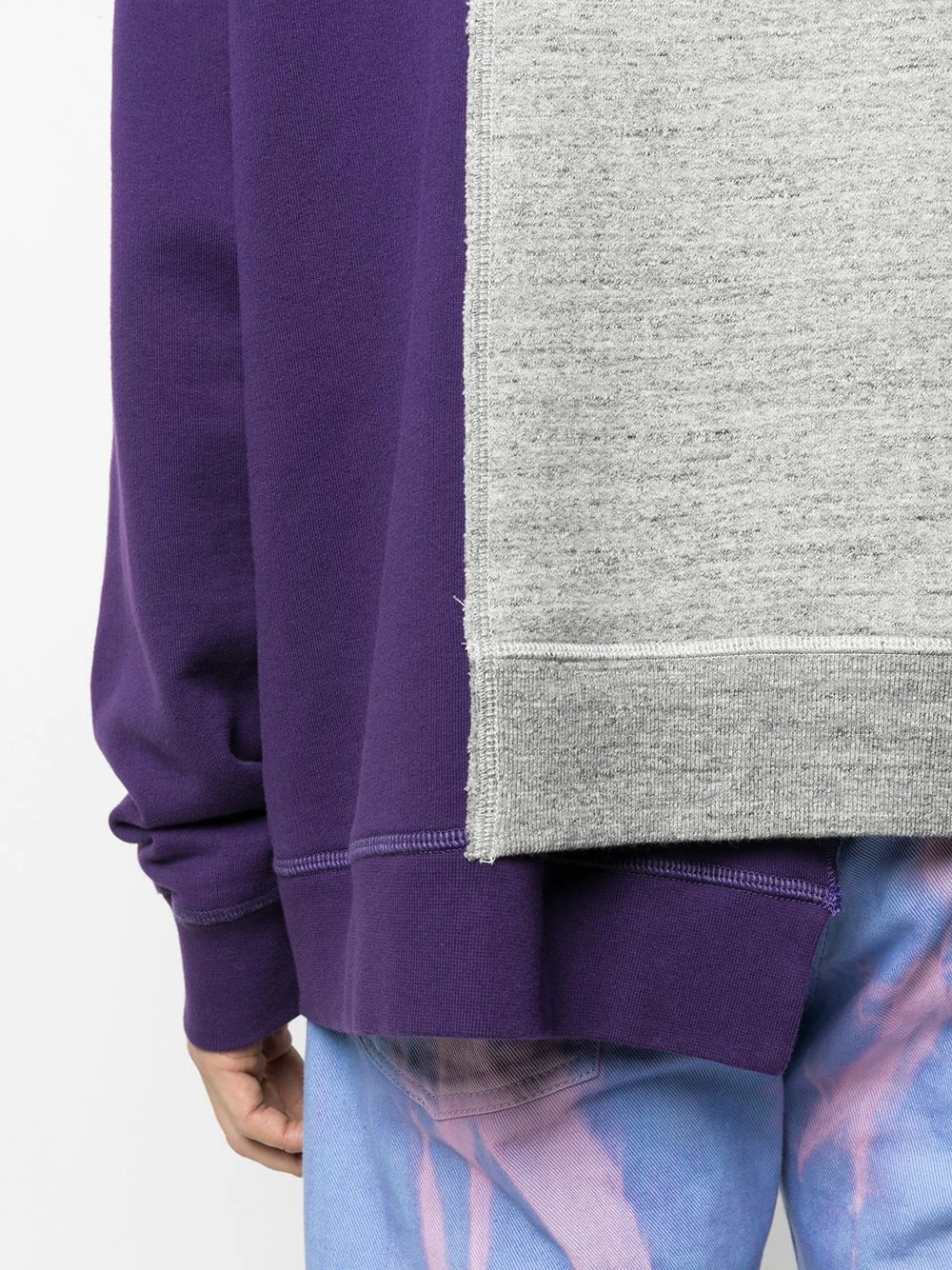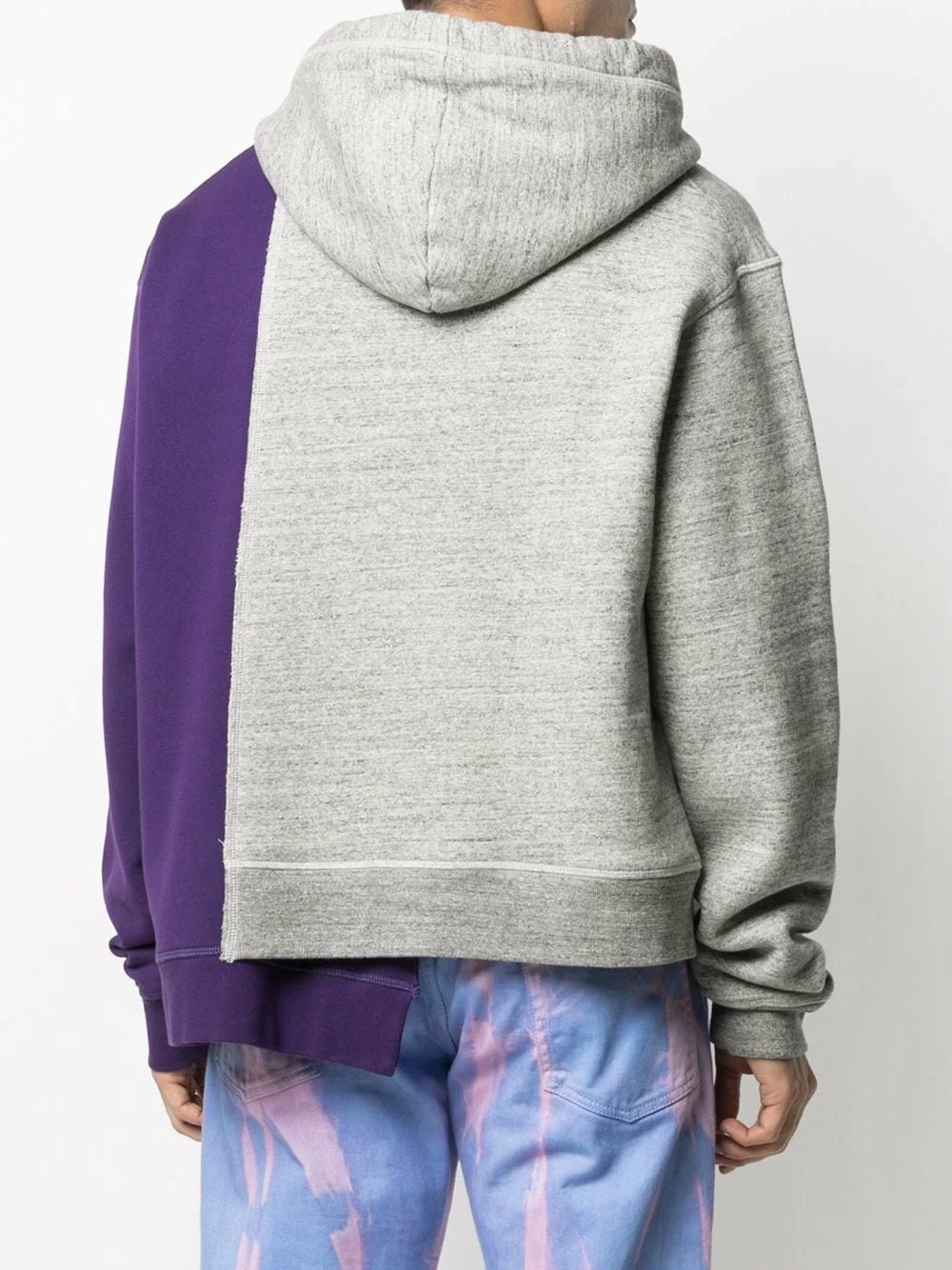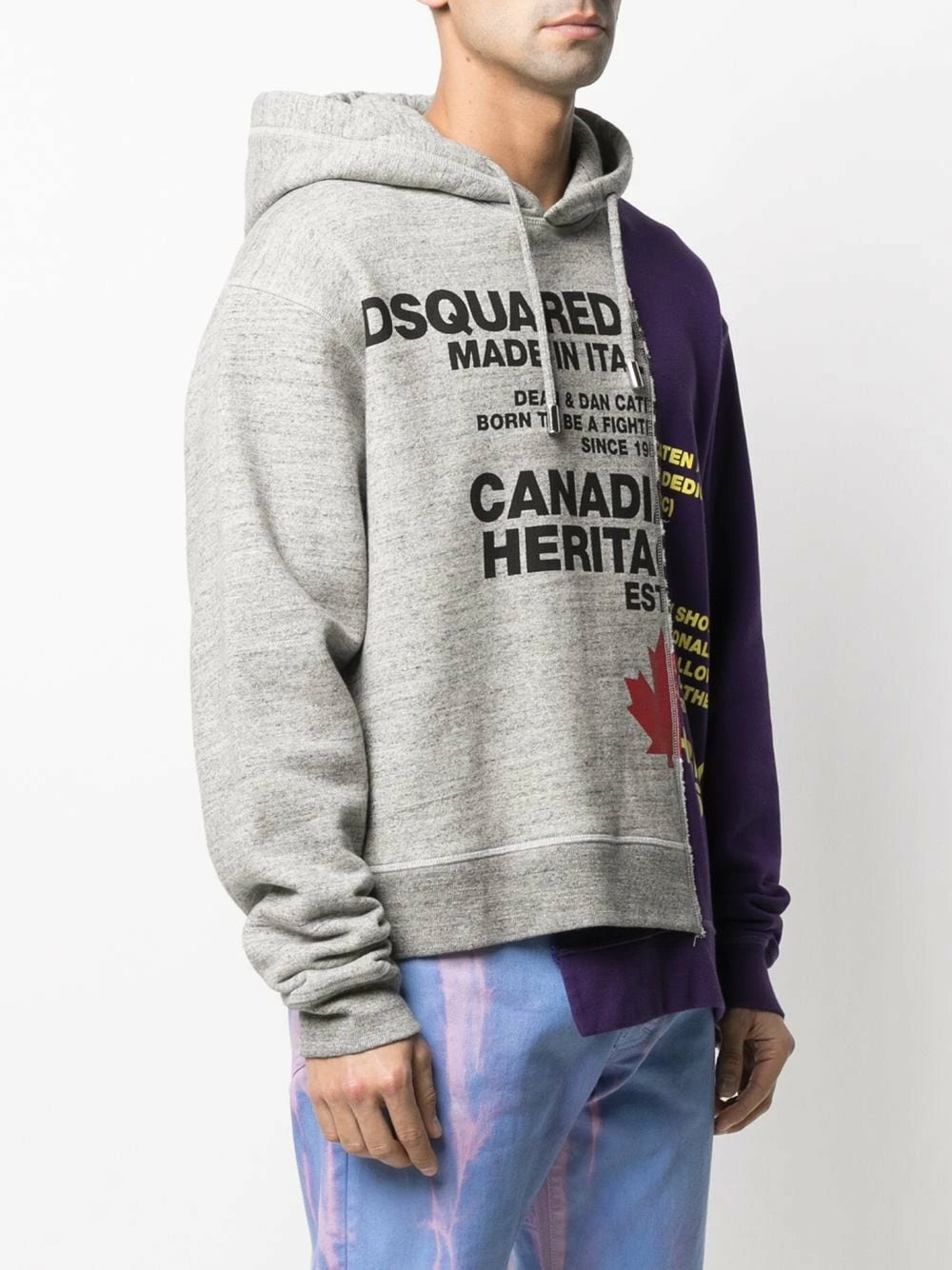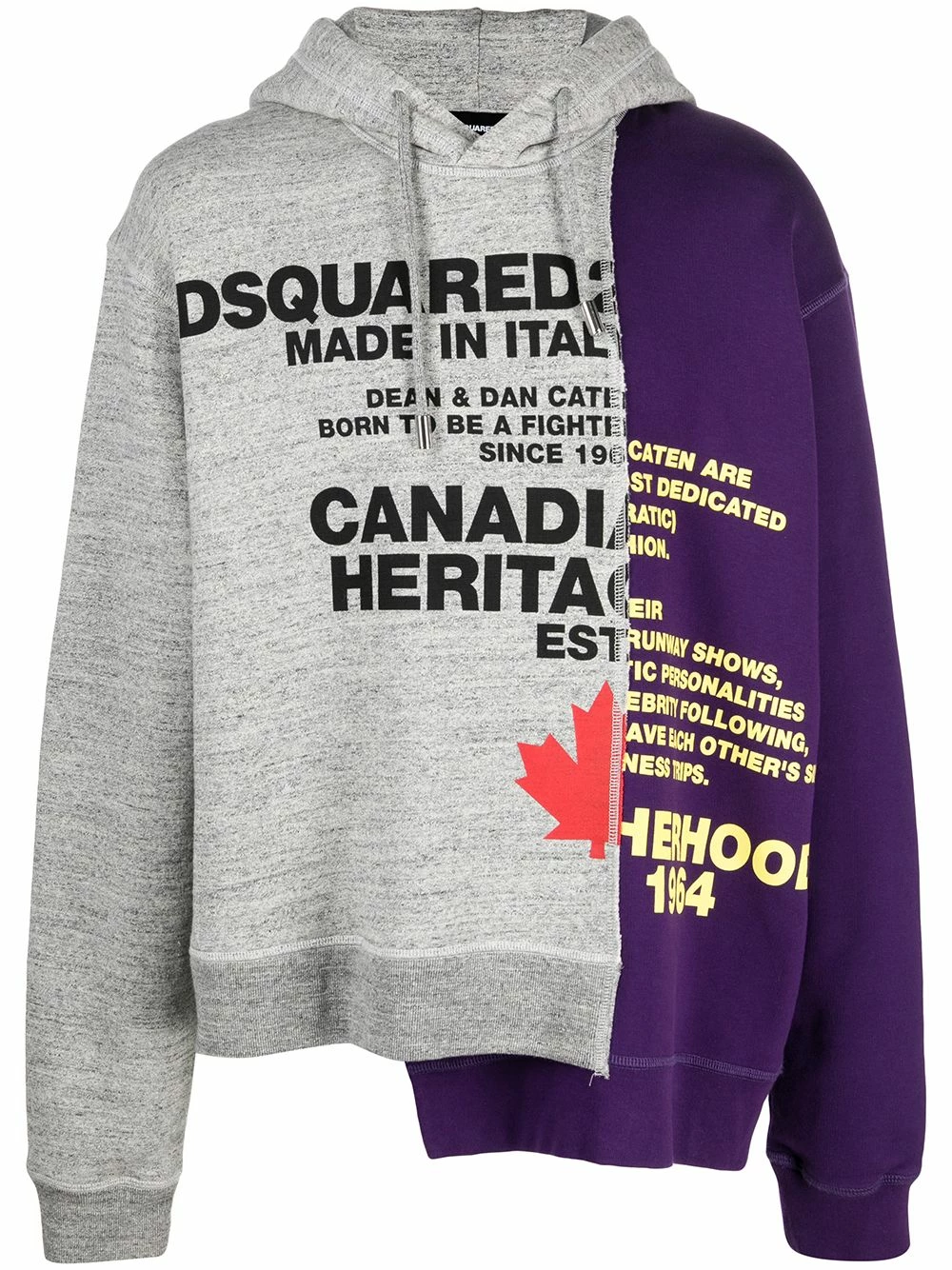 Design asymétrique, modèle bicolore, slogan imprimé sur l’avant, capuche à lien de resserrage, manches longues. Matière : coton.