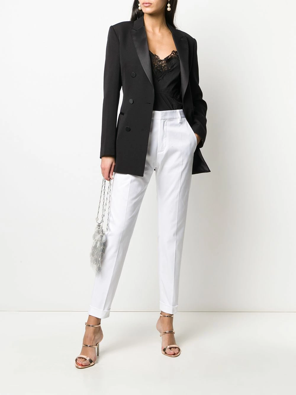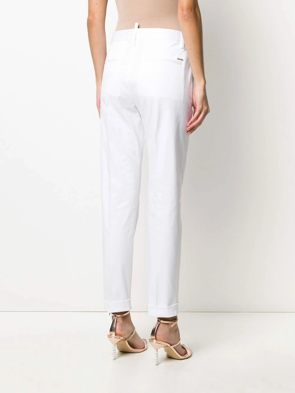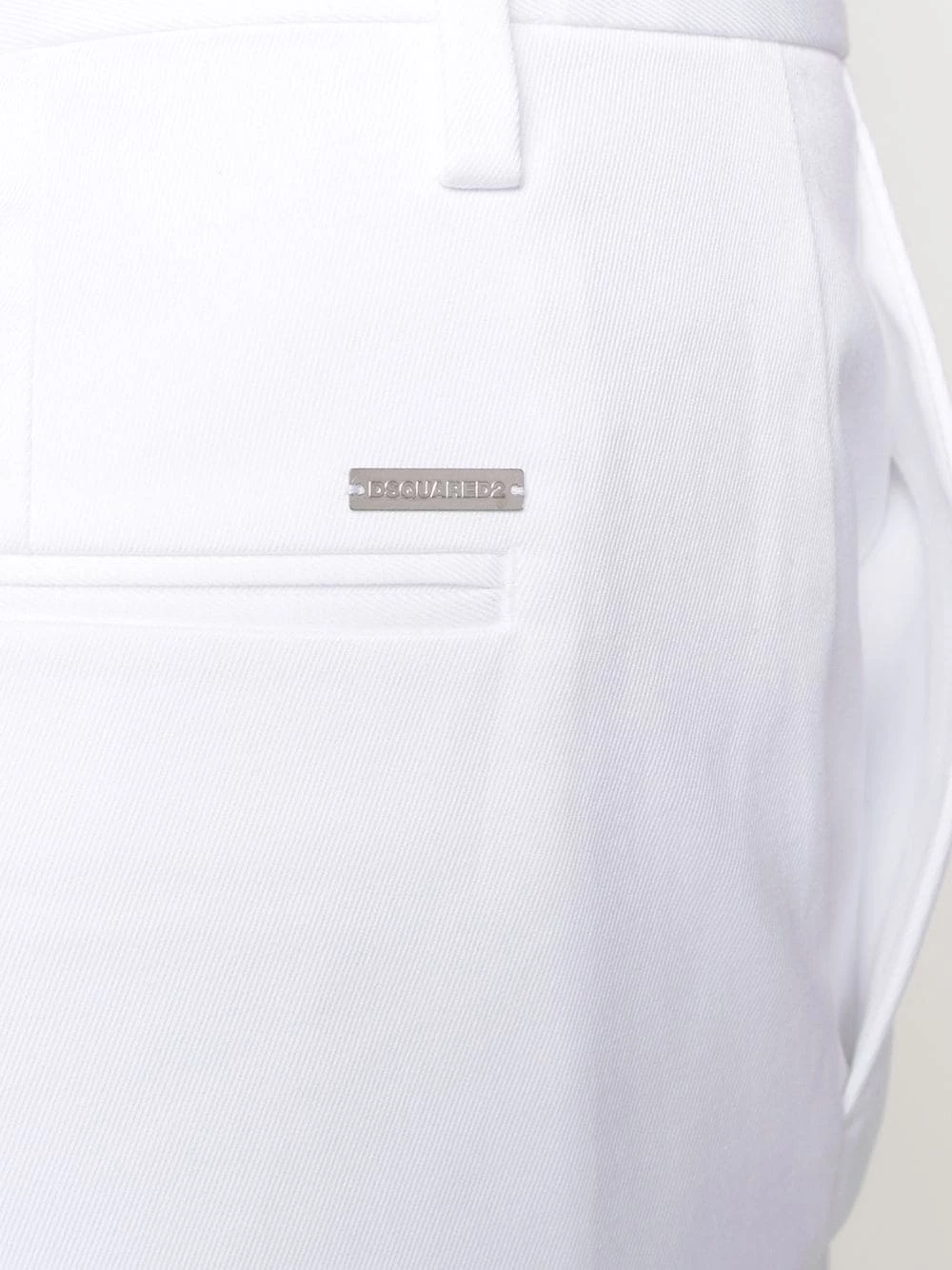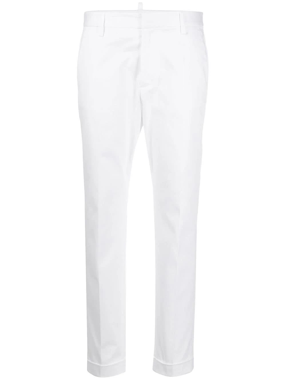 Pantalon de costume slim Dsquared2 avec taille normale, passants de ceinture à la taille, fermeture devant dissimulée, poches latérales fendues, poches arrière, ourlet retroussé et longueur classique.