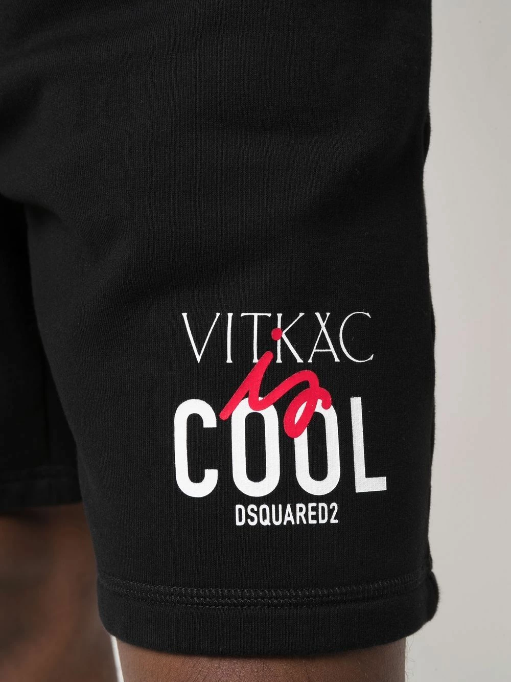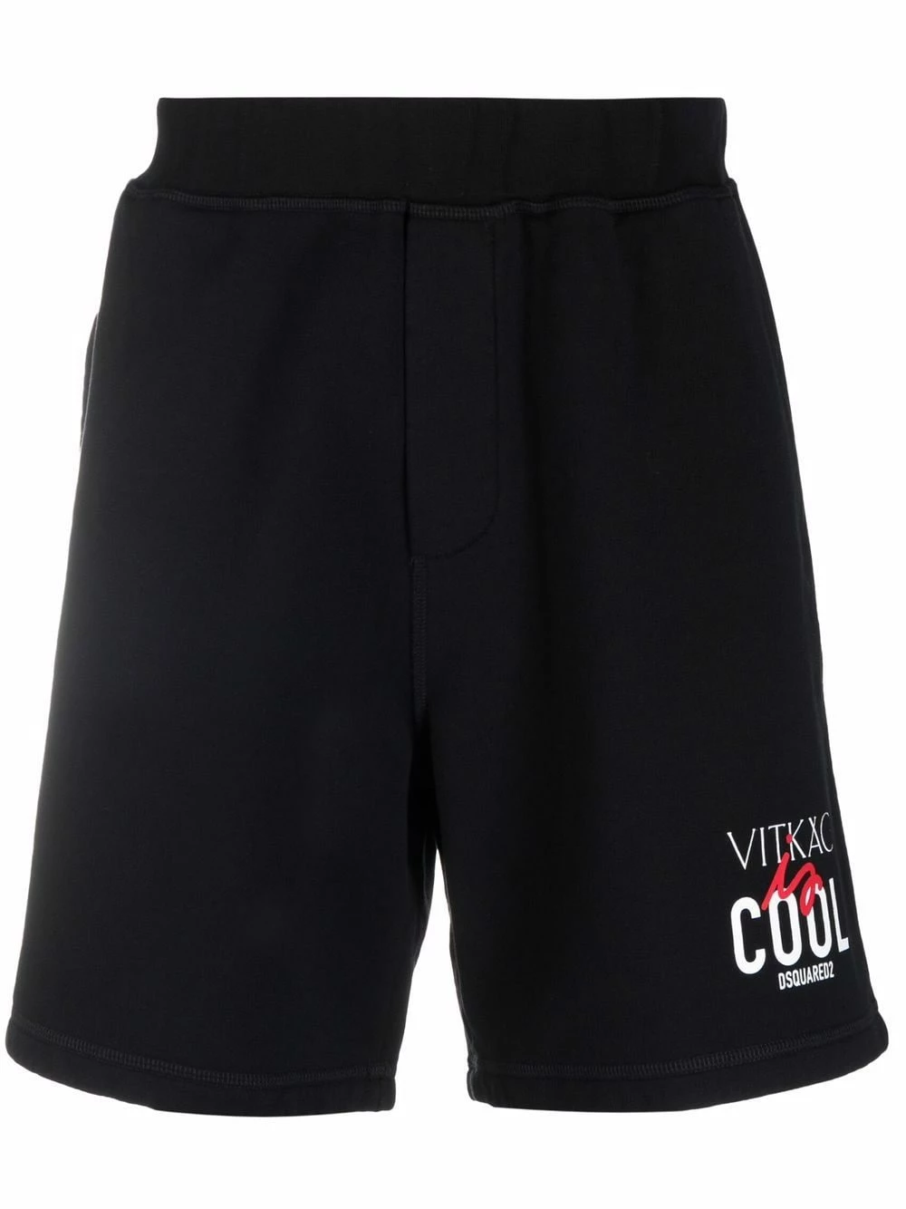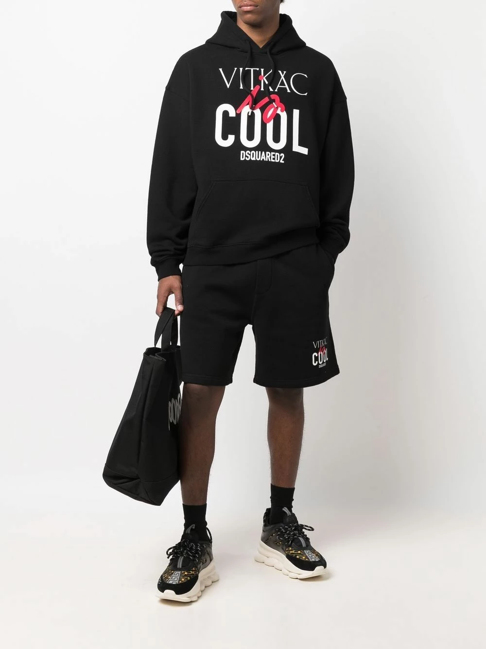 Logo imprimé sur le devant, taille élastique à lien de resserrage, poches latérales fendues. Couleur : noir. Matière : coton.