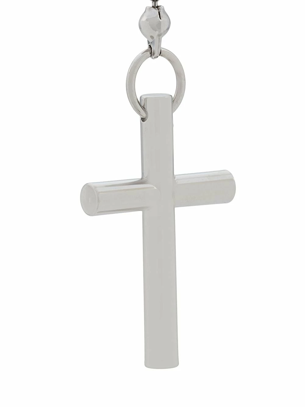 Boucles d’oreilles Undercover Dsquared2 avec pendentif crucifix, fermoir magnétique et chaîne argentée.