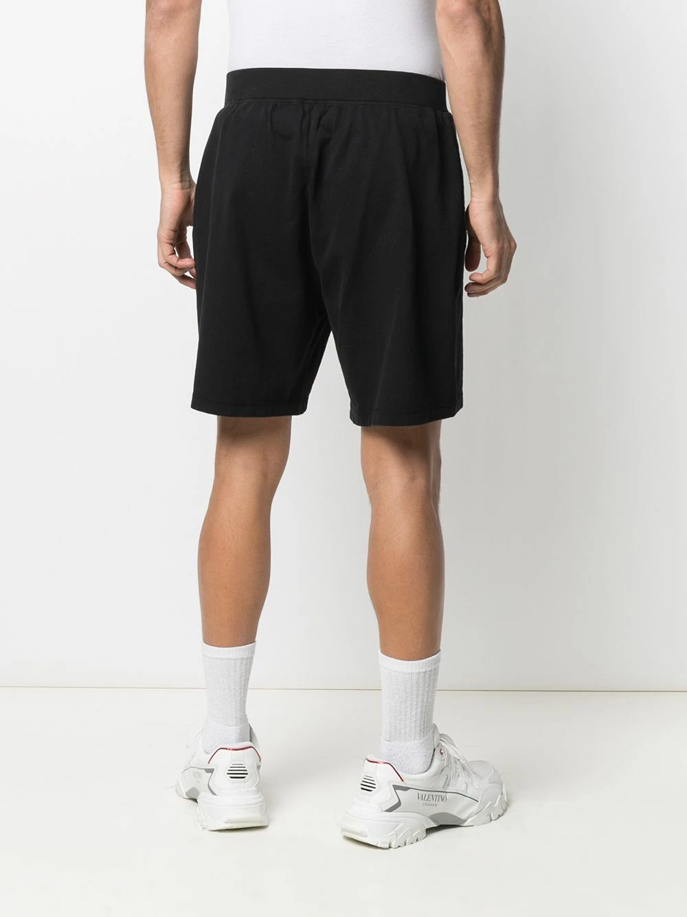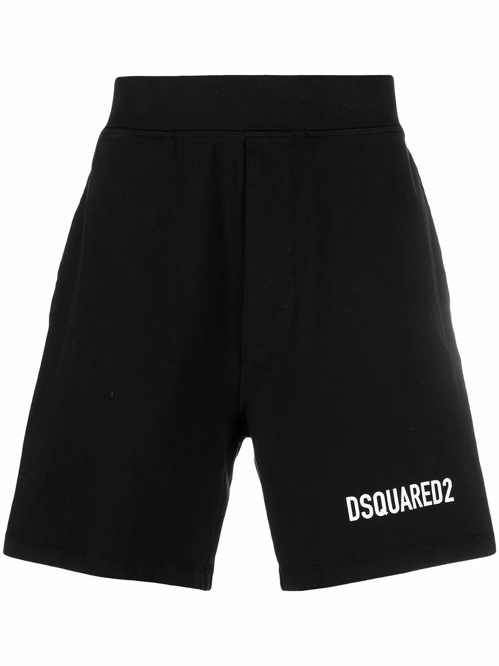 Logo imprimé sur la cuisse, ceinture élastique, fermeture dissimulée sur le devant. Couleur : noir. Matière : coton.