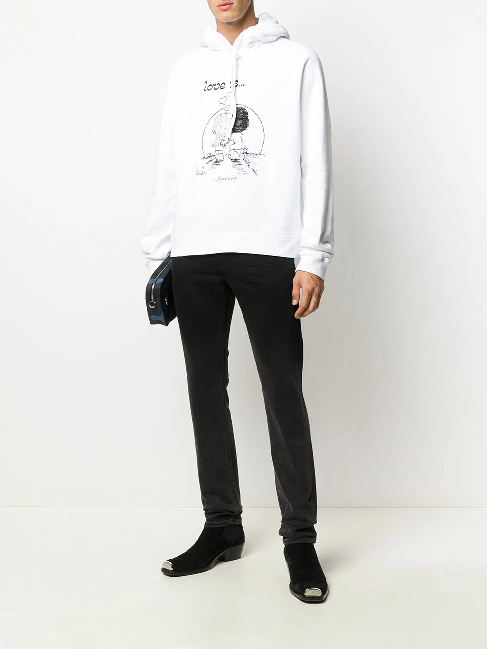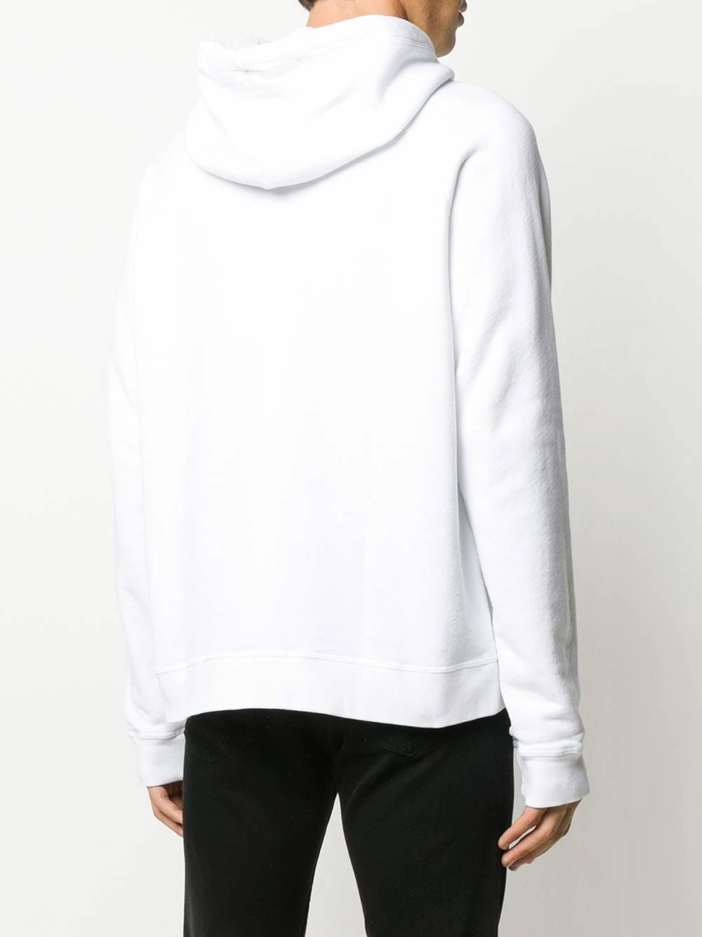 Capuche à lien de resserrage, manches longues raglan. Couleur : blanc. Matière : coton.