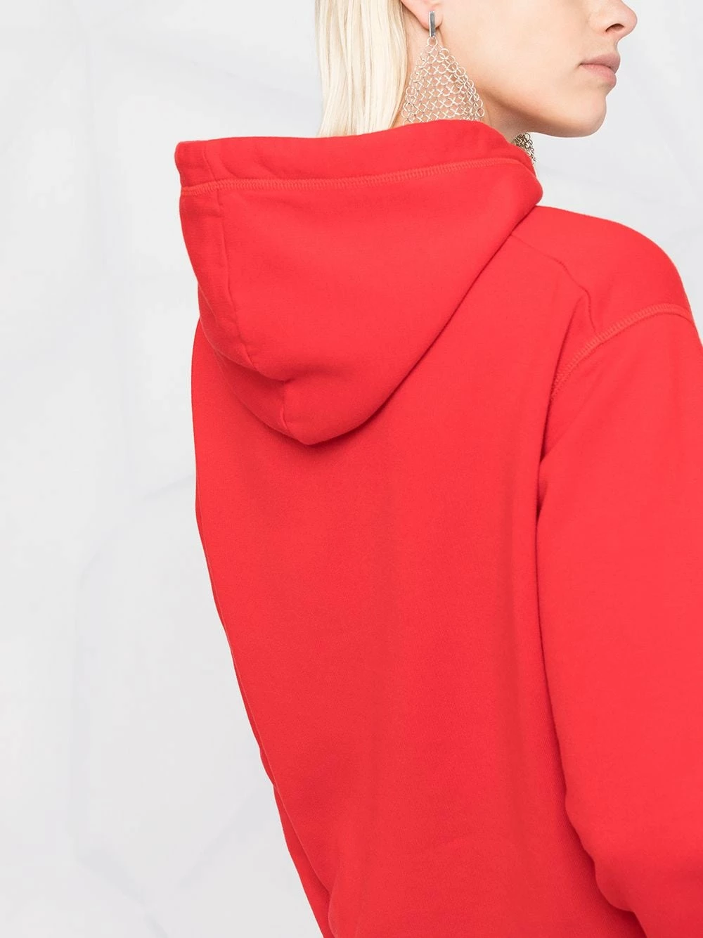 Logo imprimé sur le devant, capuche à lien de resserrage, effet d’épaules descendues, poignets élastiqués, manches longues, ourlet élastiqué. Couleur : rouge. Matière : coton.