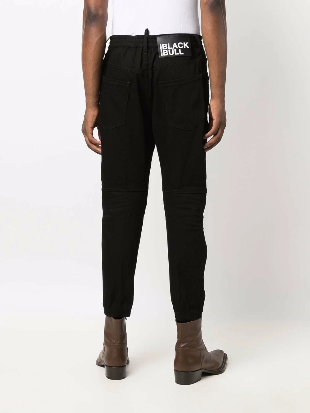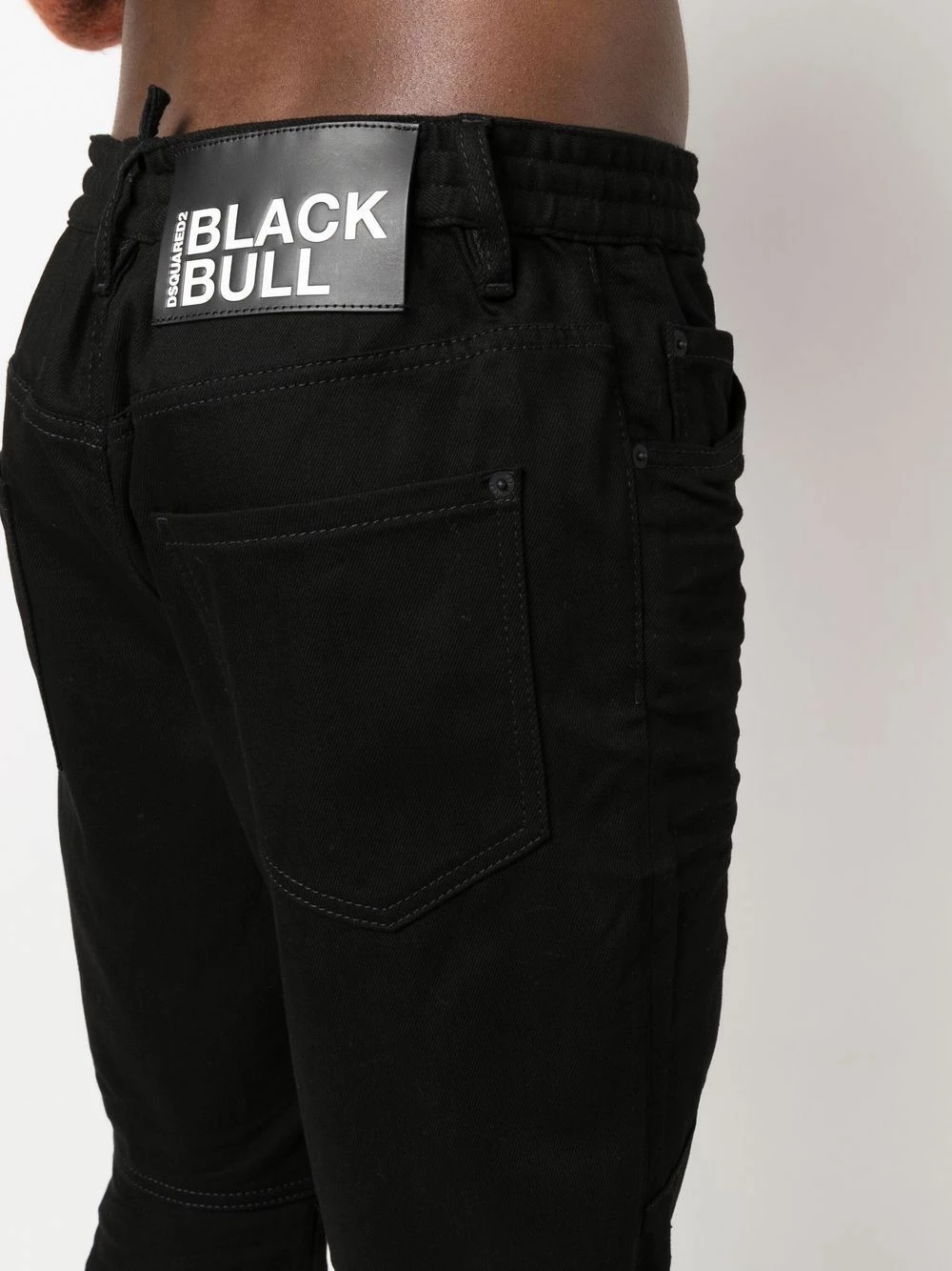 Patch logo sur l’arrière, passants de ceinture, fermeture à zip et boutons sur le devant, cinq poches classiques, coupe droite. Couleur : noir.