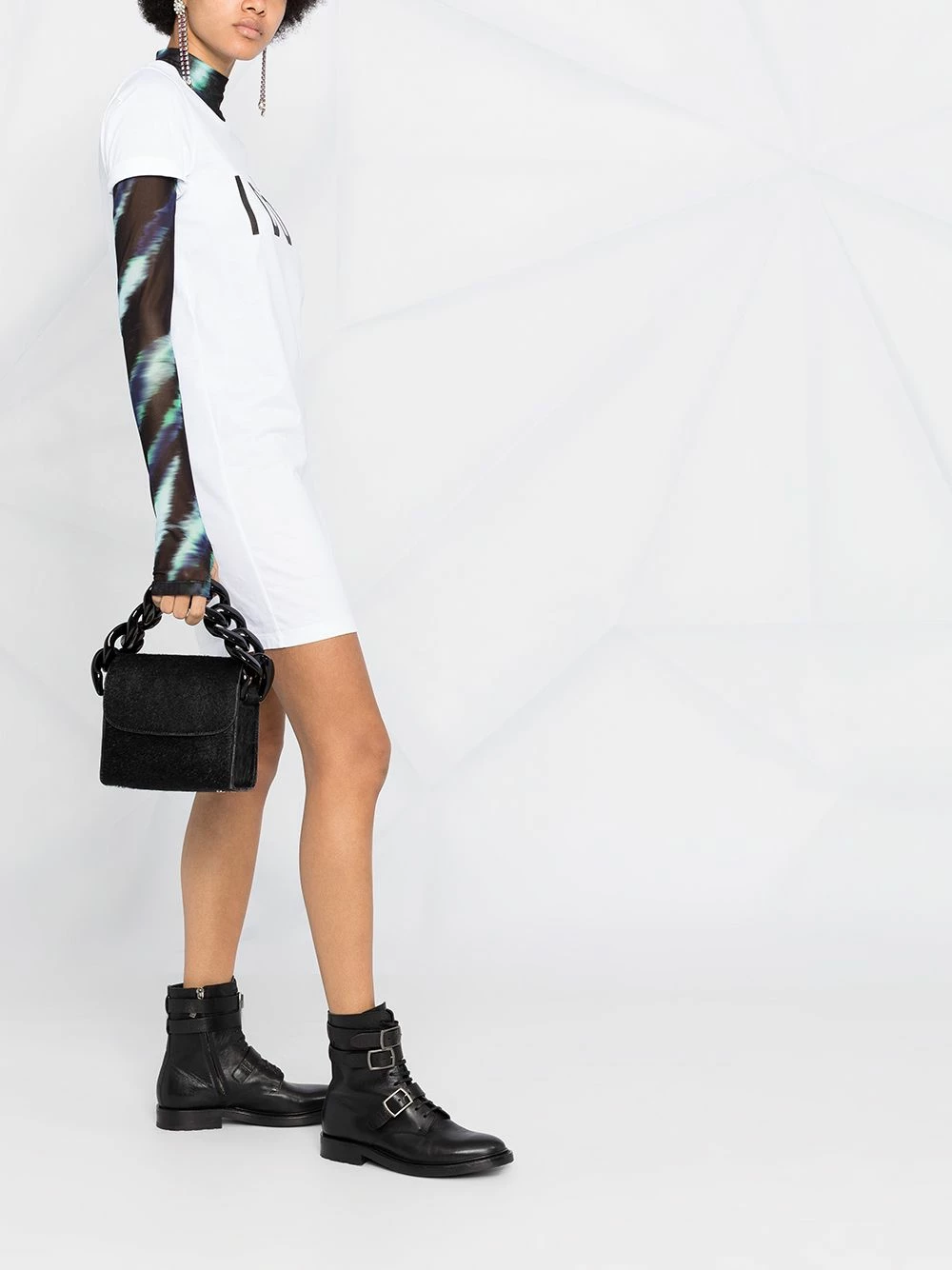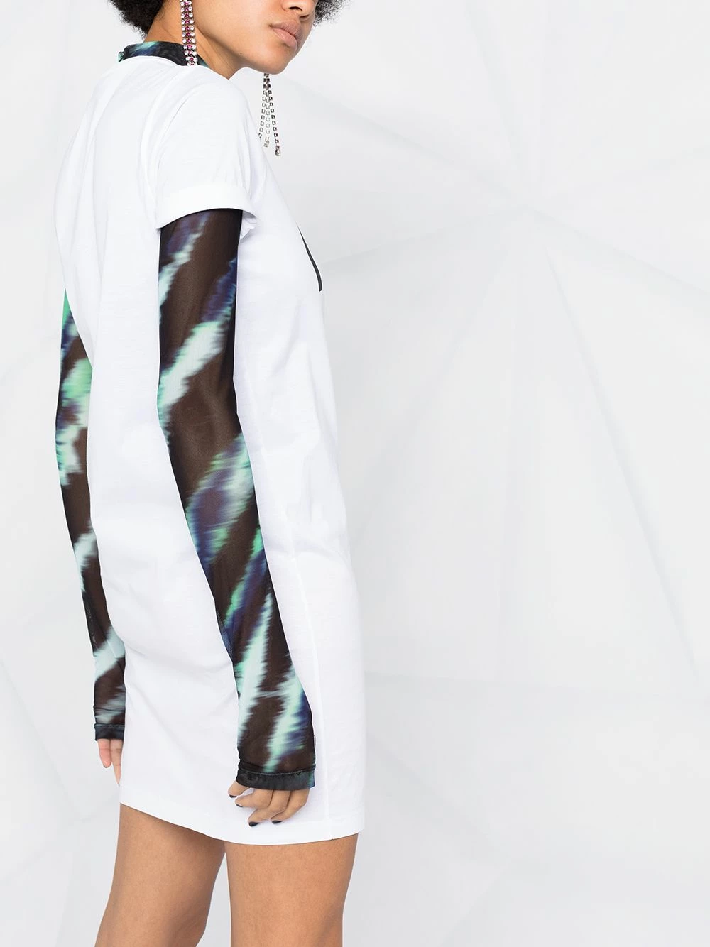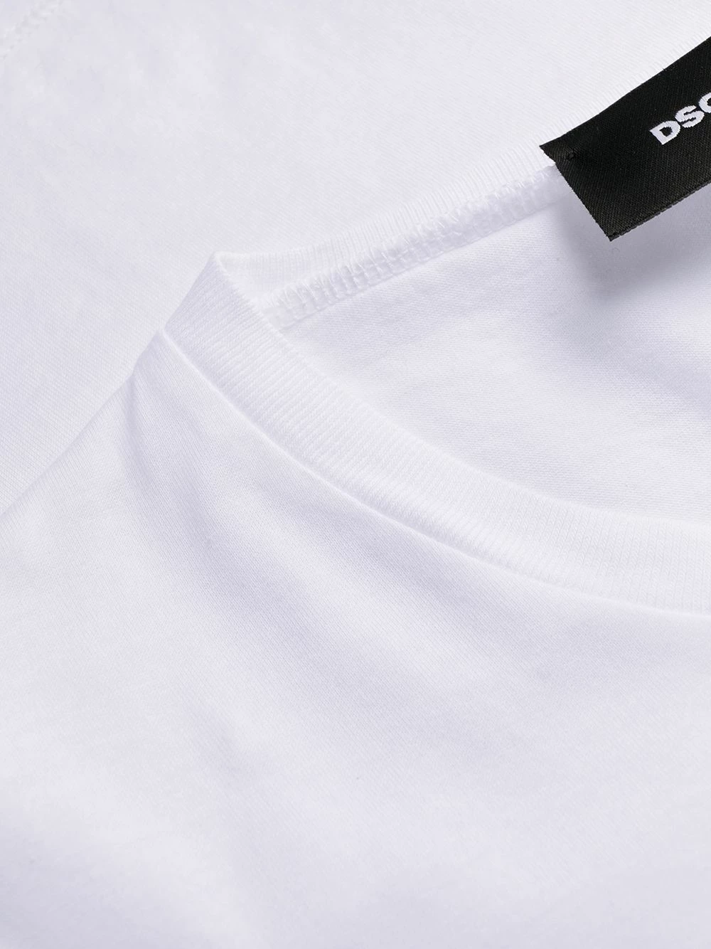 Tricot point jersey, logo imprimé sur le devant, encolure ras du cou, manches courtes. Couleur : blanc.