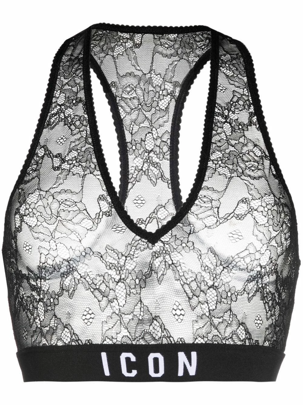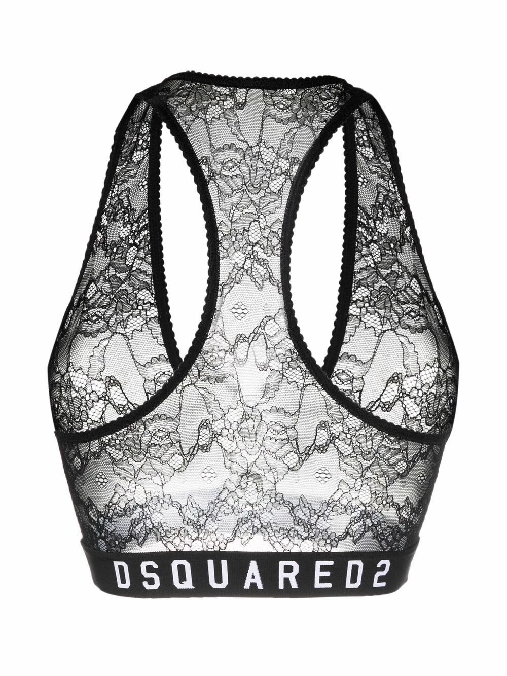 Détails en dentelle à fleurs, bande sous-poitrine à logo, col v, design sans manches, dos nageur. Couleur : noir. N’oubliez pas : cet article doit être essayé par-dessus vos propres vêtements.