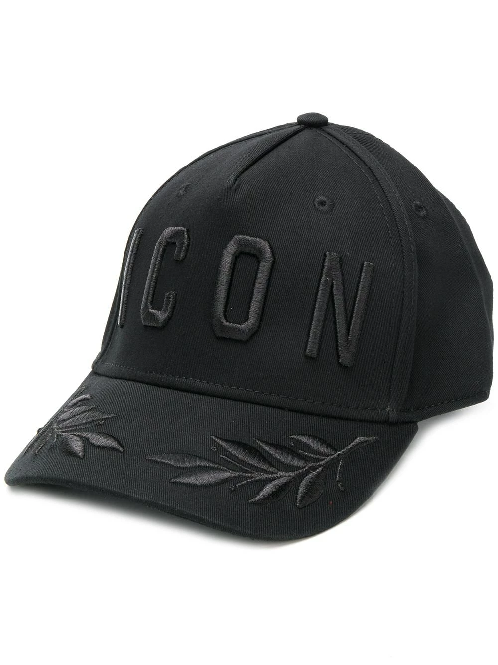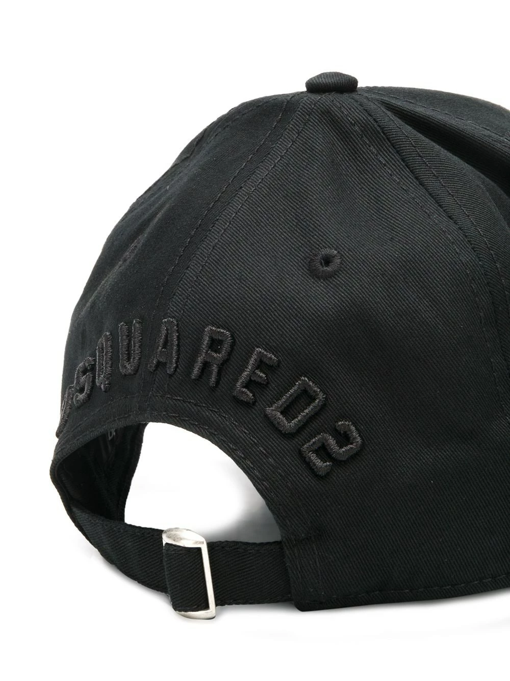Casquette à slogan brodé en coton Dsquared2 avec visière incurvée, logo brodé à l’arrière et taille ajustable. Couleur : noir.