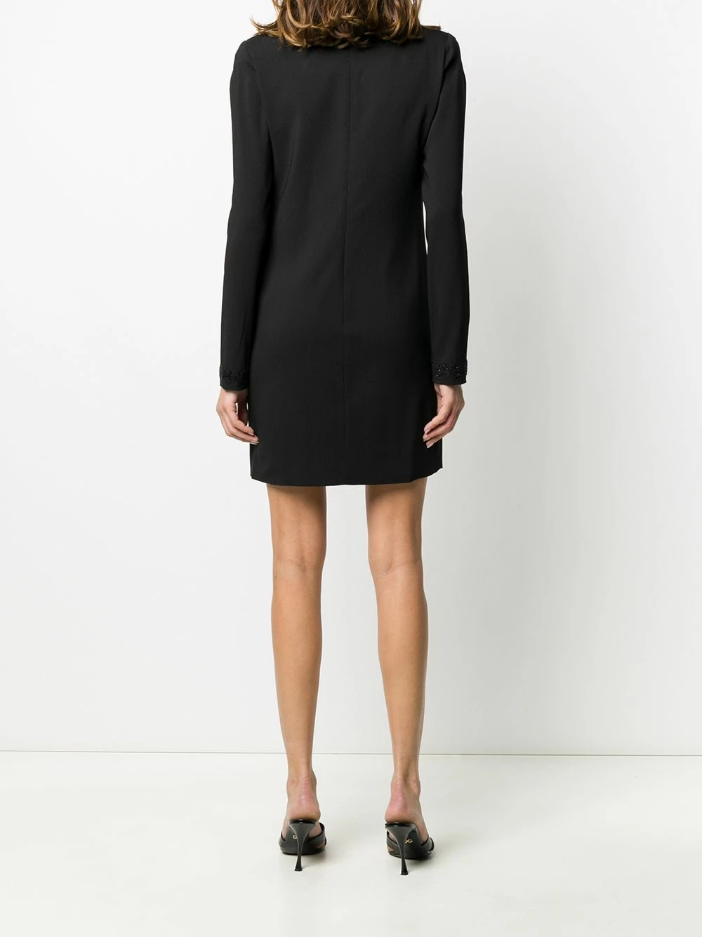 Robe courte brodée de perles en coton mélangé Dsquared2 avec encolure ronde, manches longues et fermeture zippée arrière. Couleur : noir.