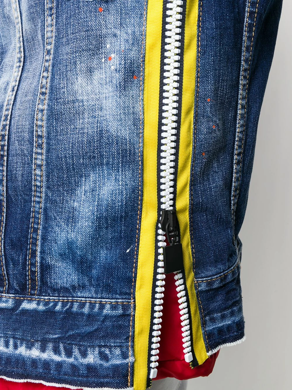 Veste en denim à capuche en coton Dsquared2 avec capuche, boutonnière sur le devant, deux poches poitrine, manches longues, poignets boutonnés, logo imprimé à l’arrière, effet usé et effet délavé.