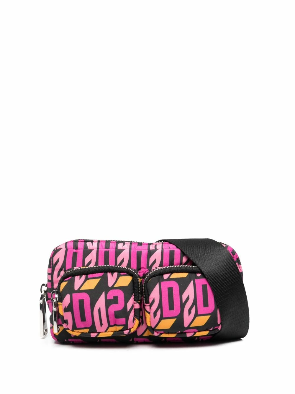 Imprimé monogrammé, fermeture zippée sur le dessus, bride porté épaule ajustable, deux poches à rabat.