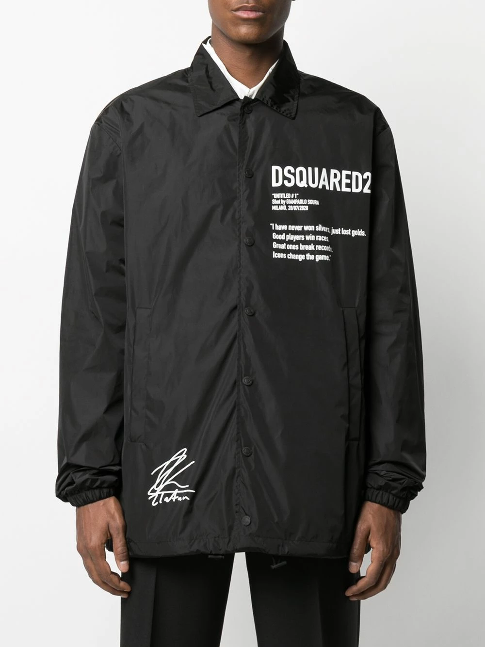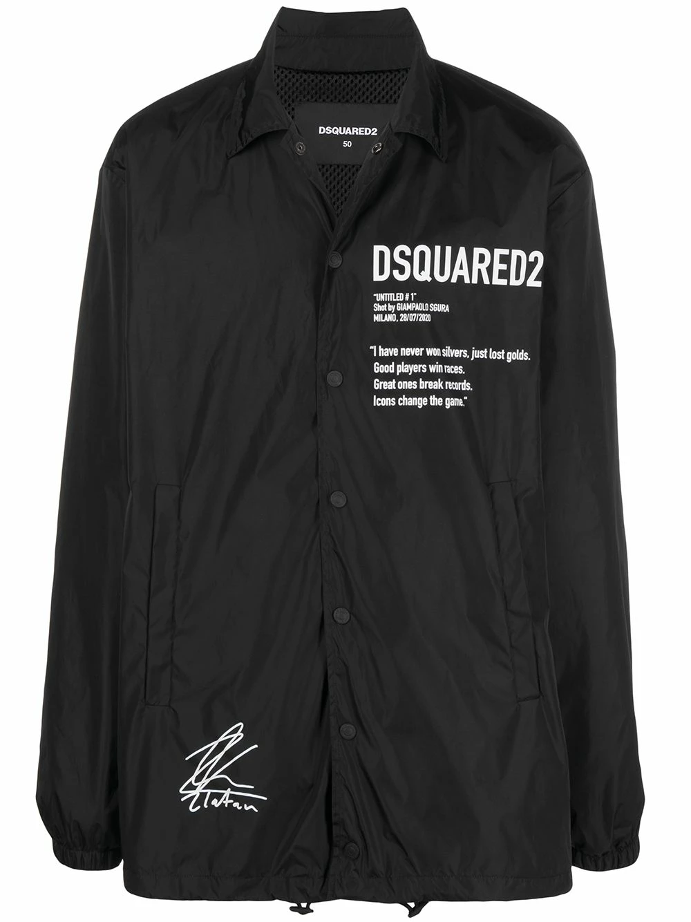 Col classique, coutures ton sur ton, fermeture à boutons pression sur le devant, logo imprimé à la poitrine, manches longues, poignets à boutons pression, poches plaquées latérales, logo imprimé à l’arrière, ourlet à lien de resserrage.