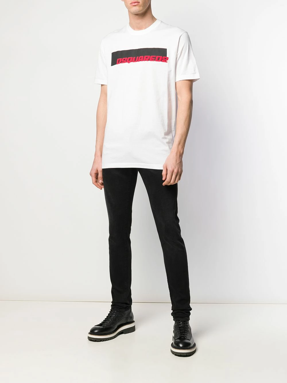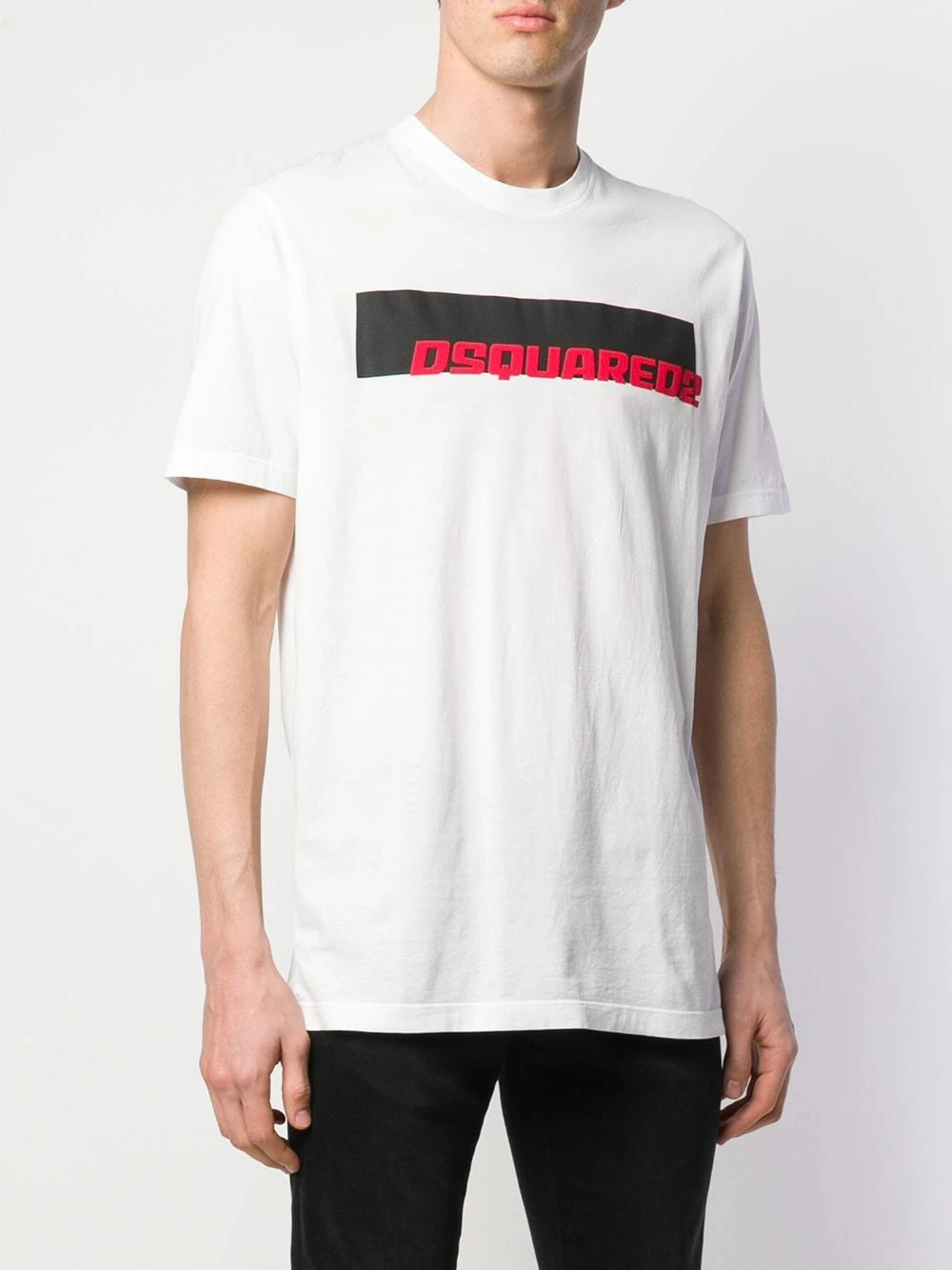 T-shirt à logo imprimé en coton Dsquared2 avec encolure ras du cou, manches courtes et ourlet droit. Couleur : blanc.