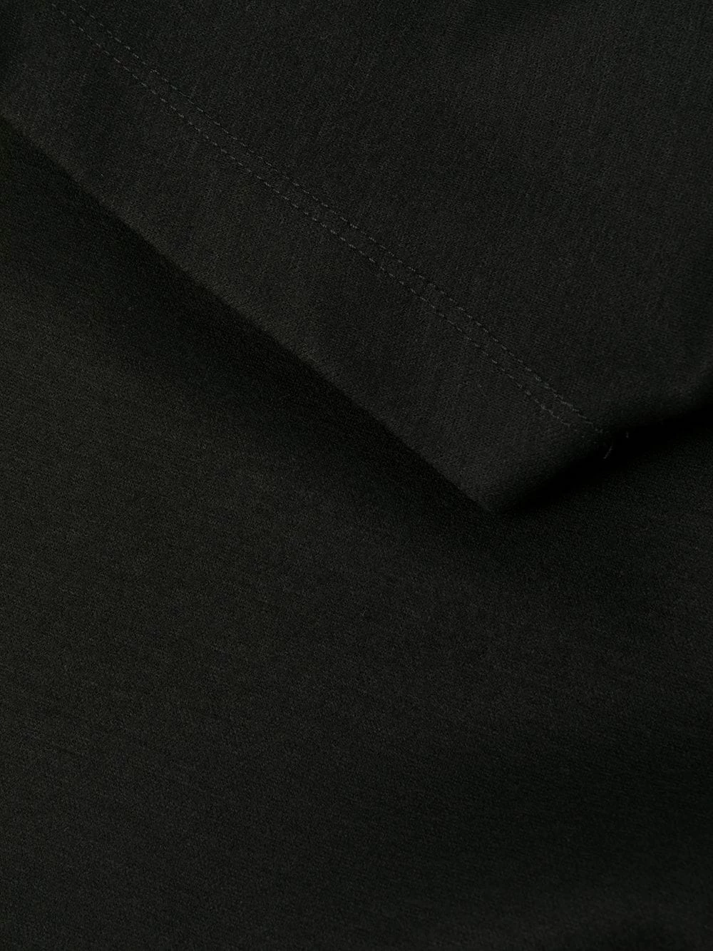 Maille fine, ourlet droit, encolure ronde, manches courtes. Couleur : noir.