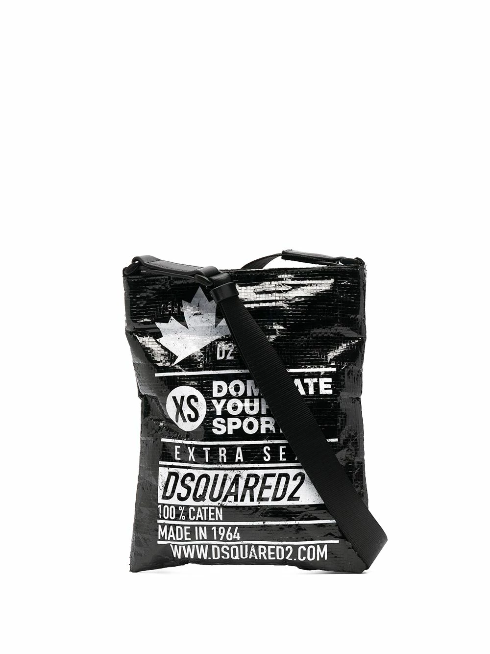Logo imprimé sur le devant, imprimé feuille d’érable, fermeture zippée sur le dessus, bride porté épaule ajustable, fentes pour carte intérieures, patch logo intérieur.