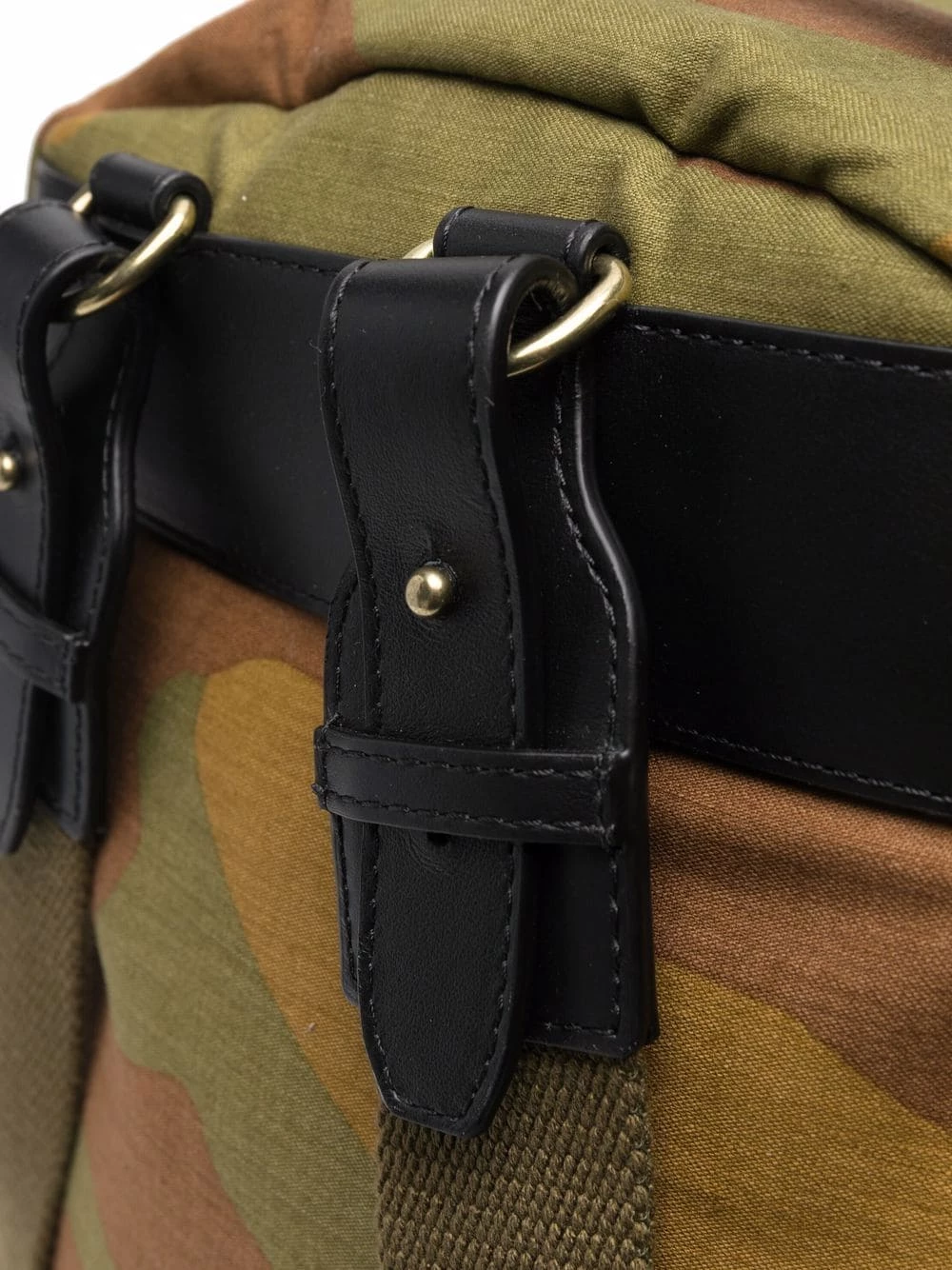 Imprimé camouflage, patch logo sur le devant, poche zippée sur le devant, fermeture zippée sur le dessus, brides porté épaule ajustables.