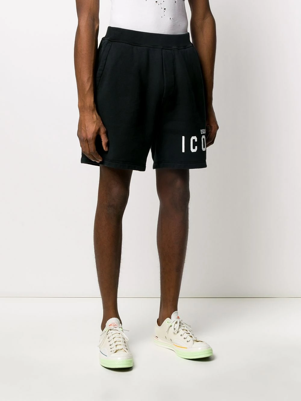 Short Dsquared2 Icon en coton Dsquared2 avec ceinture élastique, poches latérales fendues, poche arrière plaquée et coupe courte. Couleur : noir.