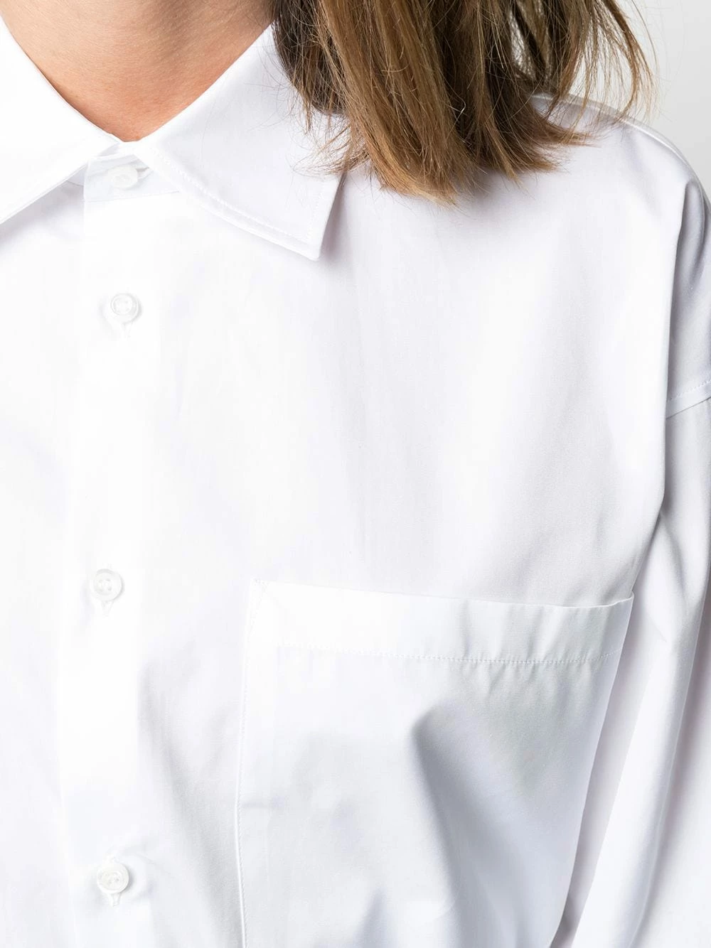 Col classique, boutonnière sur le devant, poche poitrine plaquée, plaque logo argentée, manches longues, poignets boutonnés, ourlet incurvé. Couleur : blanc.