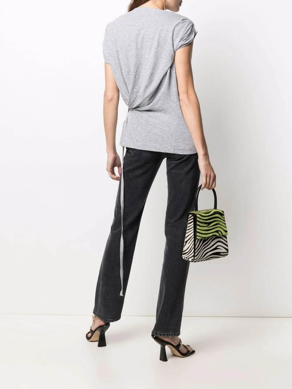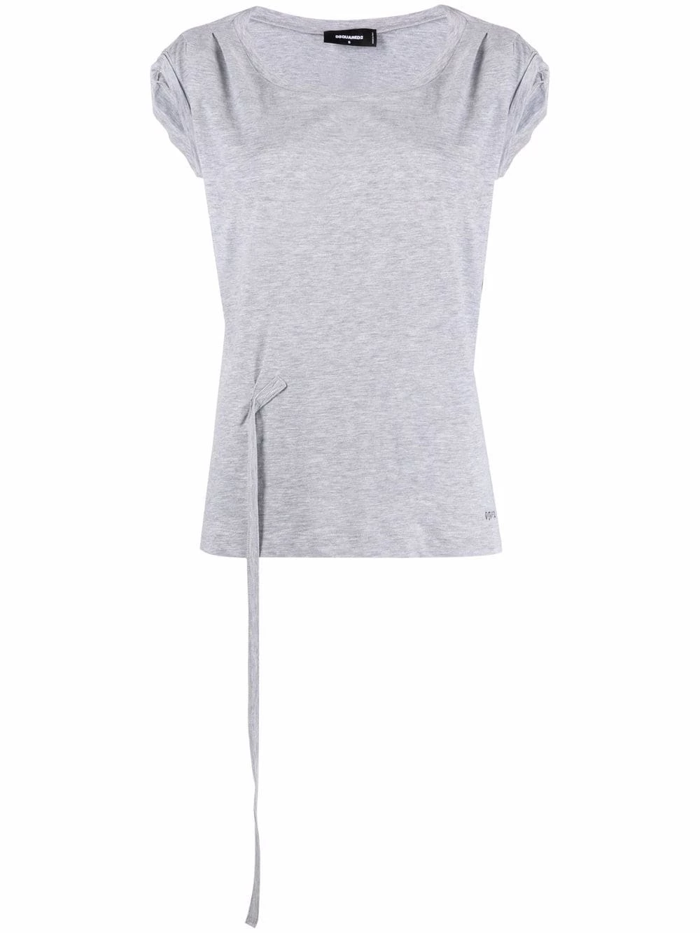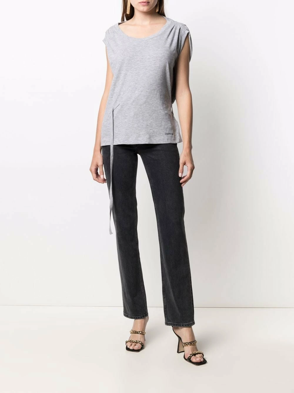 Encolure arrondie, tricot point jersey, ourlet droit, détails de fronces. Couleur : gris. Matière : coton mélangé.