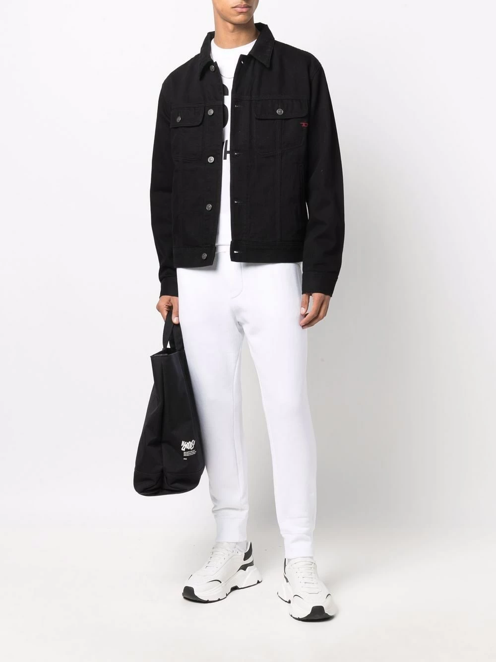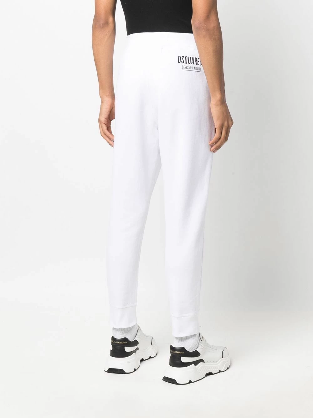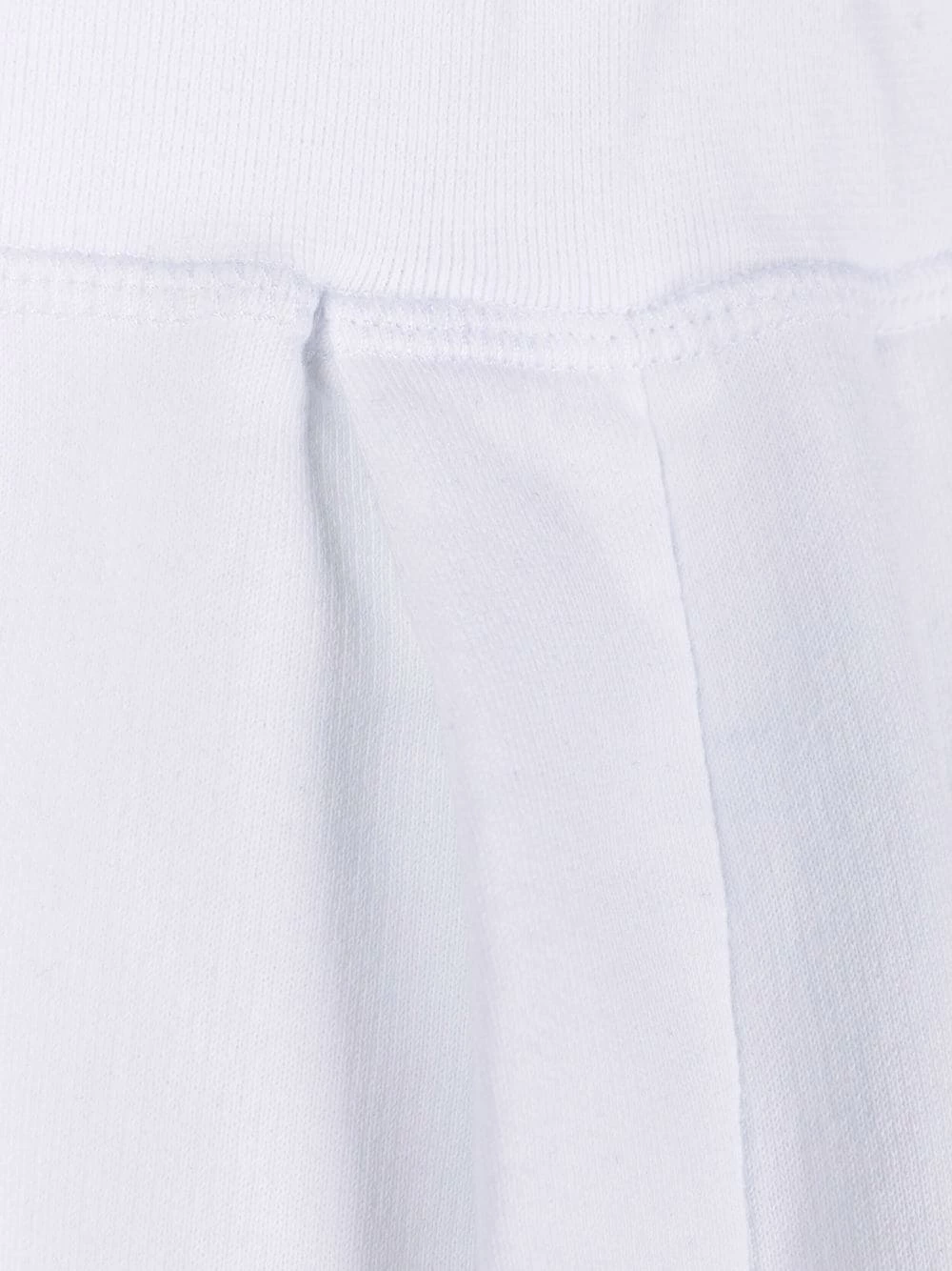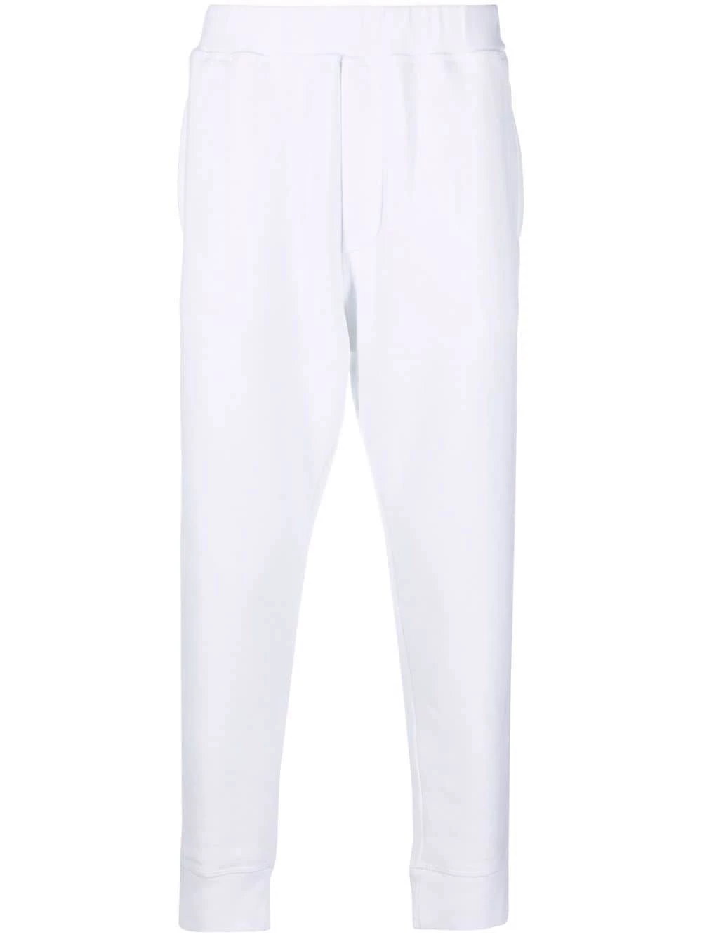 Ceinture élastique, deux poches latérales fendues, coupe fuselée. Couleur : blanc. Matière : coton.