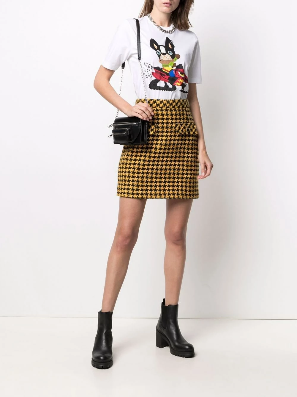 Tricot point jersey, encolure ras du cou, manches courtes, ourlet droit.