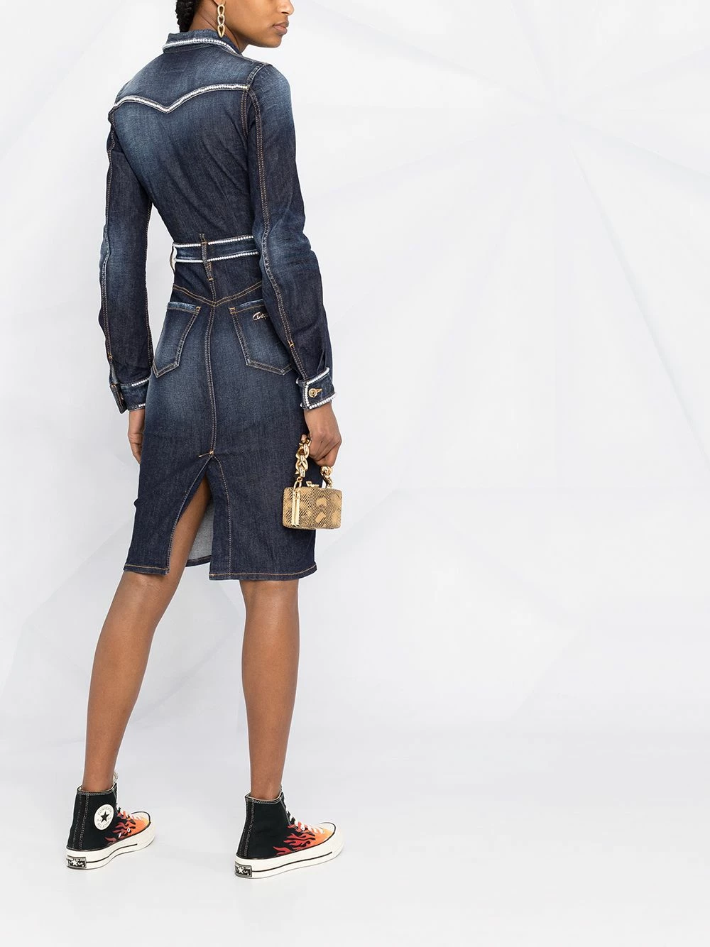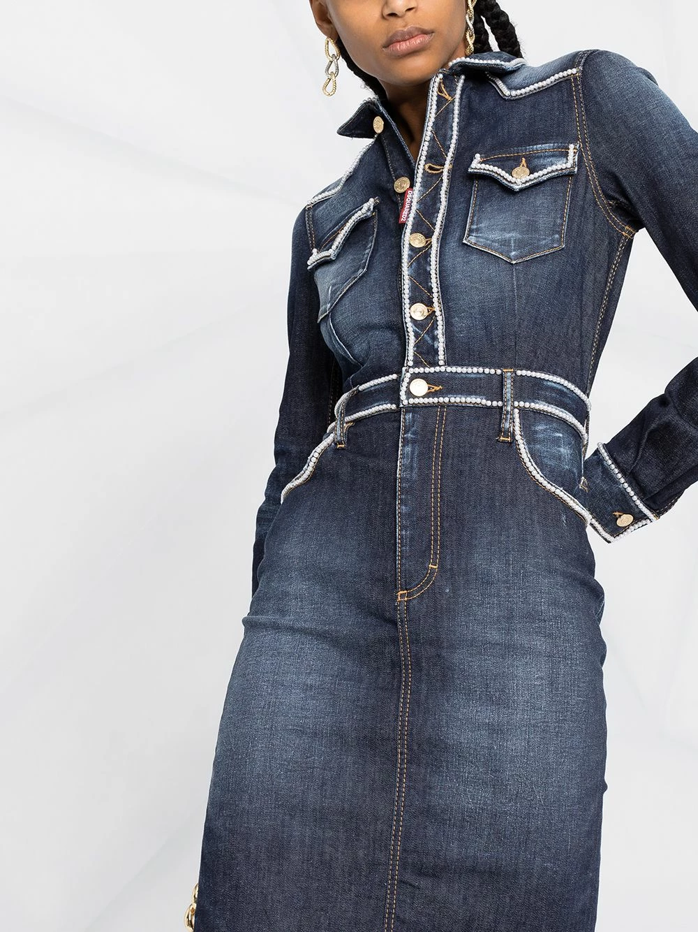 Bordures en perles brodées, design à fronces, boutonnière sur le devant, deux poches poitrine plaquées, manches longues, poignets boutonnés, fente arrière, coupe mi-longue. Couleur : Bleu.