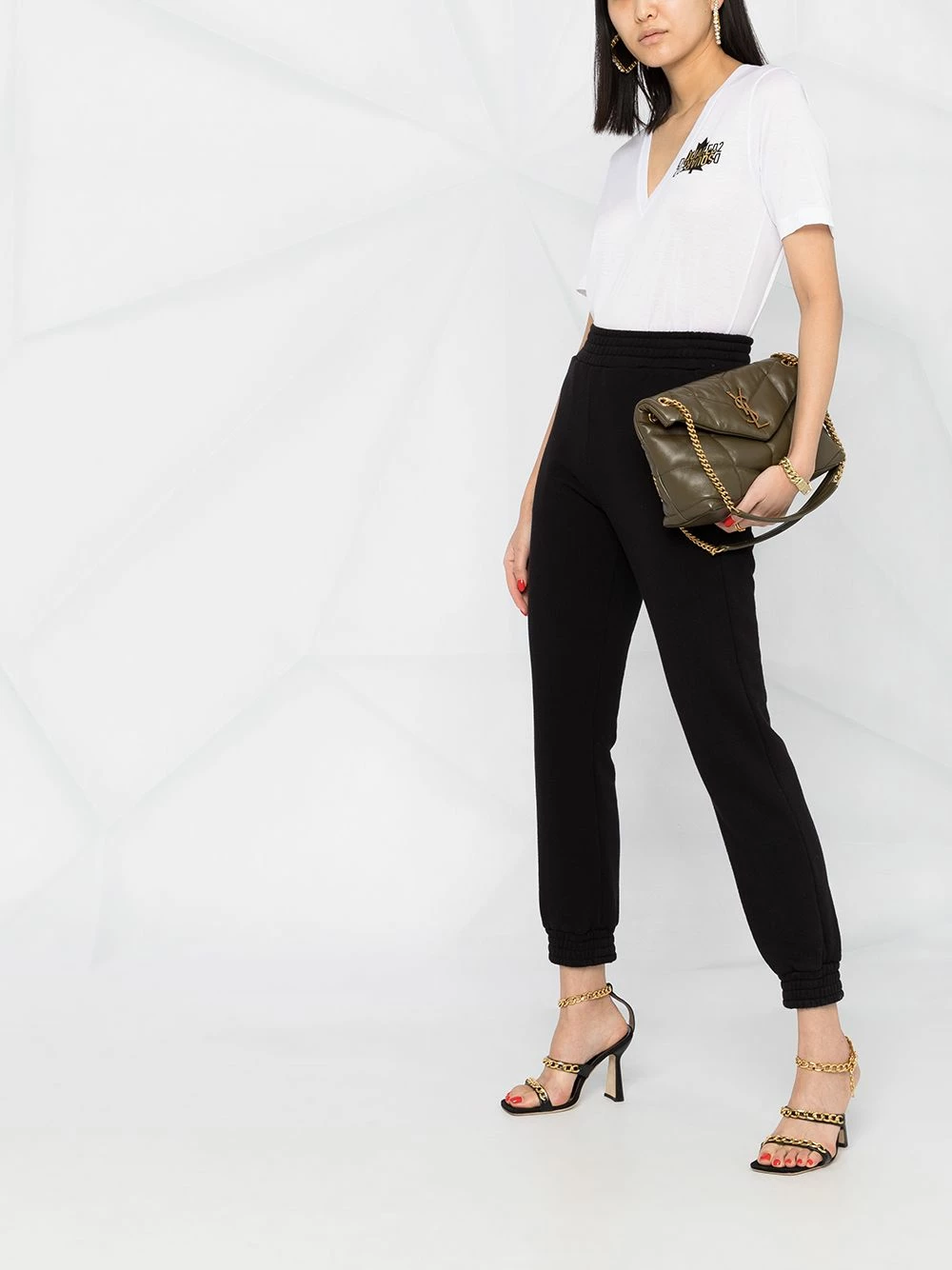 Logo imprimé à la poitrine, col v, manches courtes, ourlet droit. Couleur : blanc. Matière : coton.