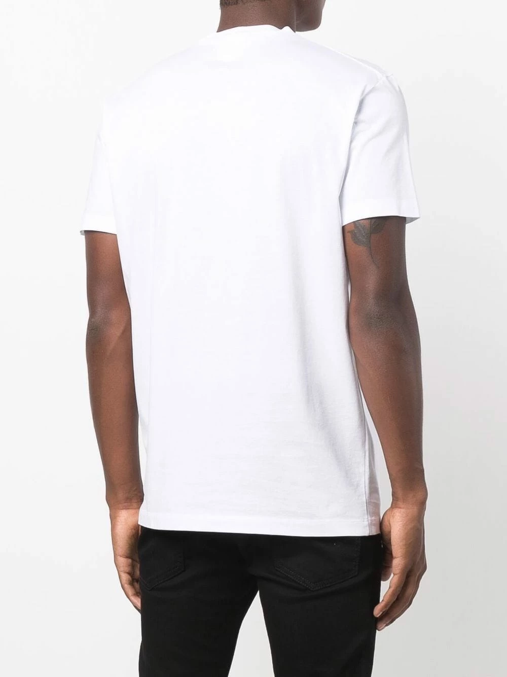 Détail nervuré, logo imprimé à la poitrine, slogan imprimé sur l’avant, encolure ronde, manches courtes. Couleur : blanc. Matière : coton.