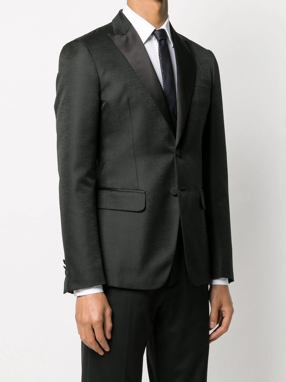 Costume ajusté classique en coton Dsquared2 avec revers crantés, boutonnière sur le devant, manches longues, poche poitrine, poches devant à rabat et double fente arrière. Couleur : noir.