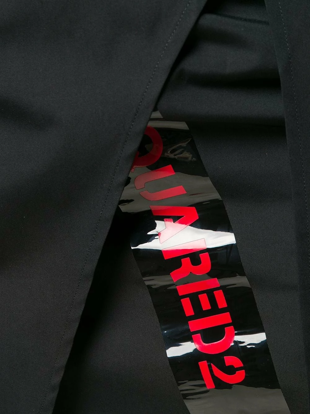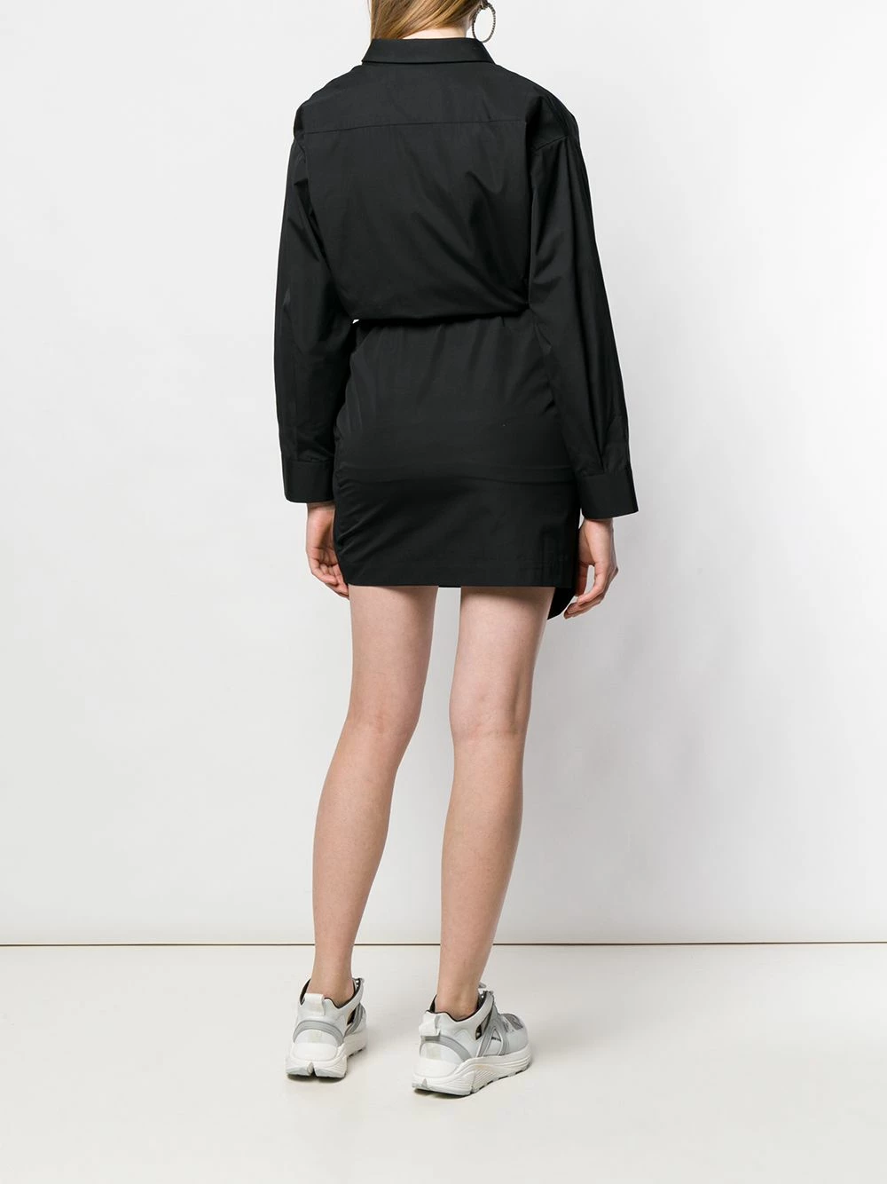 Robe Nina en coton Dsquared2 avec design superposé, encolure ronde, col classique, boutonnière sur le devant, ceinture nouée, ourlet asymétrique, manches longues et poignets boutonnés.