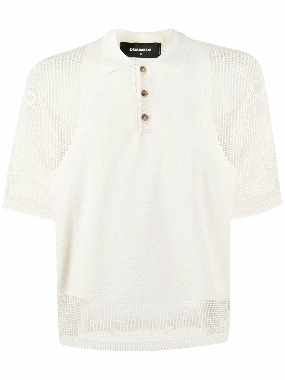 Polo à insert en mesh en coton Dsquared2 avec col pointu, manches courtes, empiècements en résille, patte de boutonnage sur le devant et aspect souple.